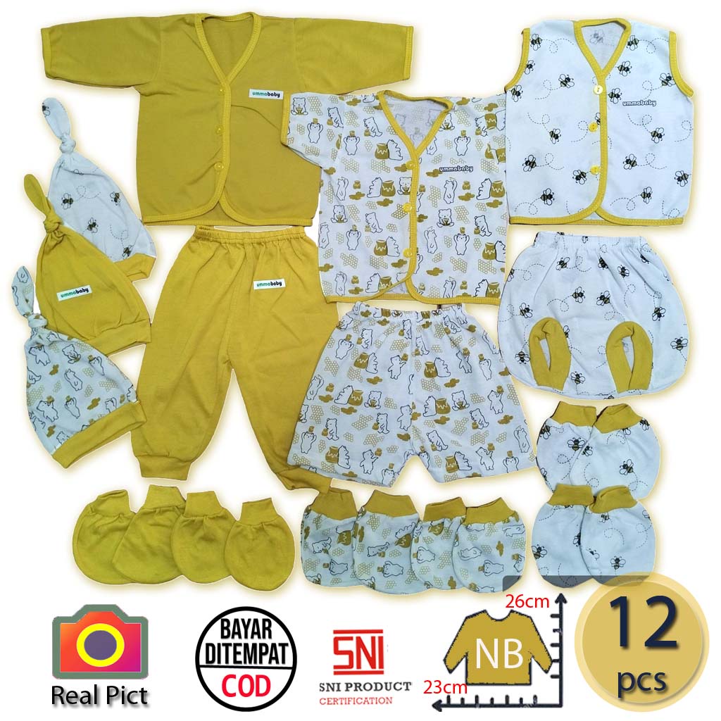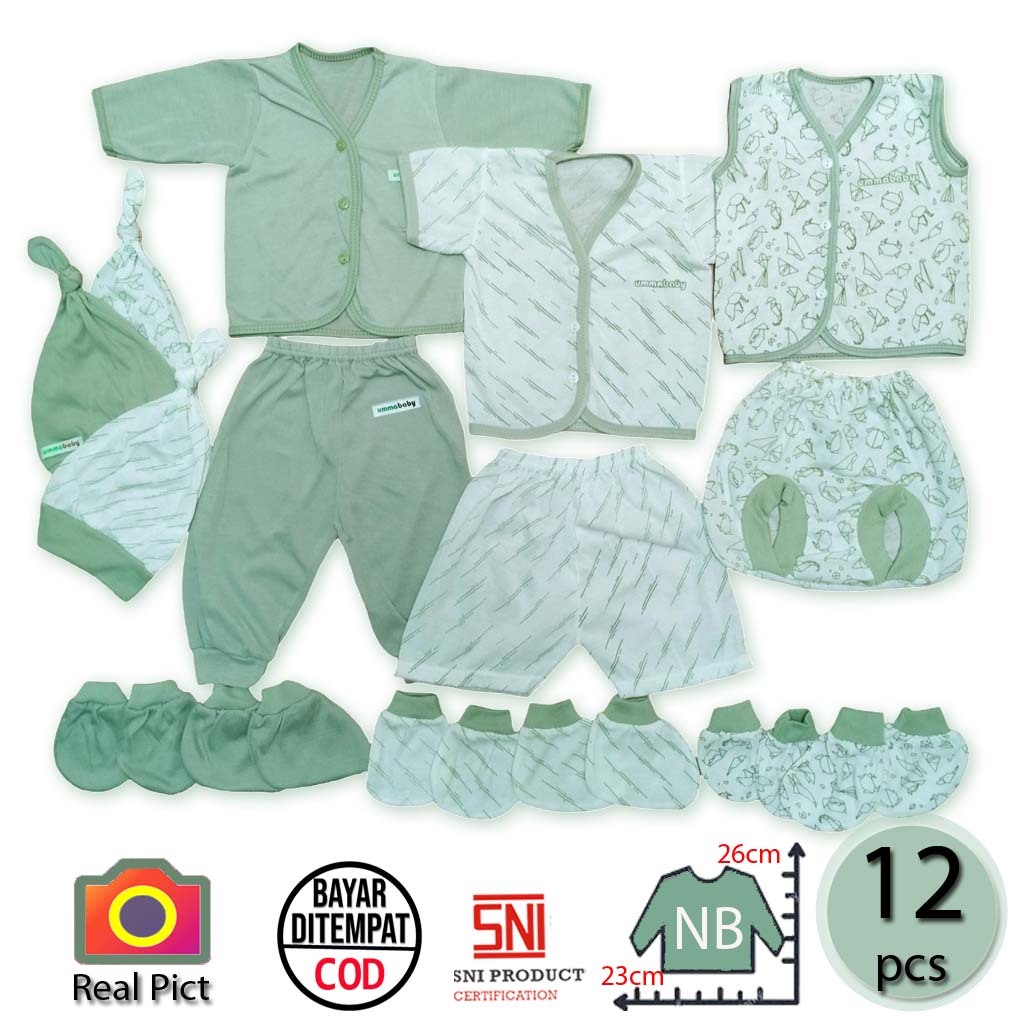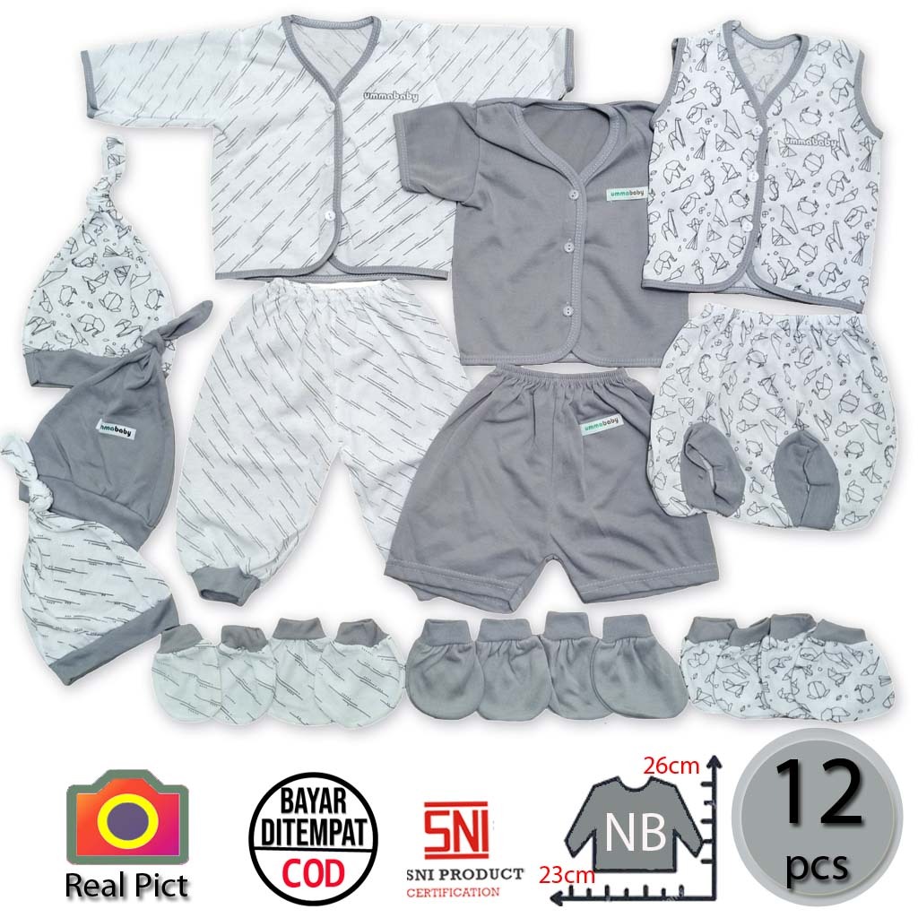 ummababyshop 12 PCS Perlengkapan Bayi Baru Lahir Baju Bayi Perempuan Laki laki Kado Lahiran Setelan Anak Bedong Set Popo