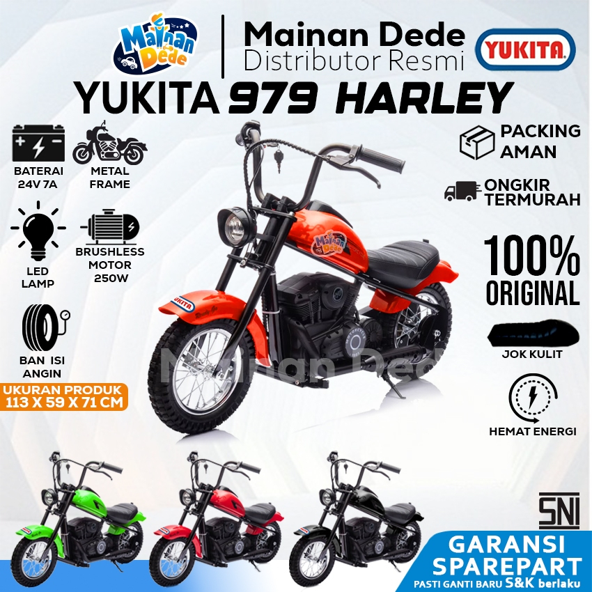 Mainan Anak Motor Aki Anak Yukita 979 Harley Motorcycles Yukita 979 RX KING Yukita979 Ban Isi Angin Jok Kulit Lampu LED