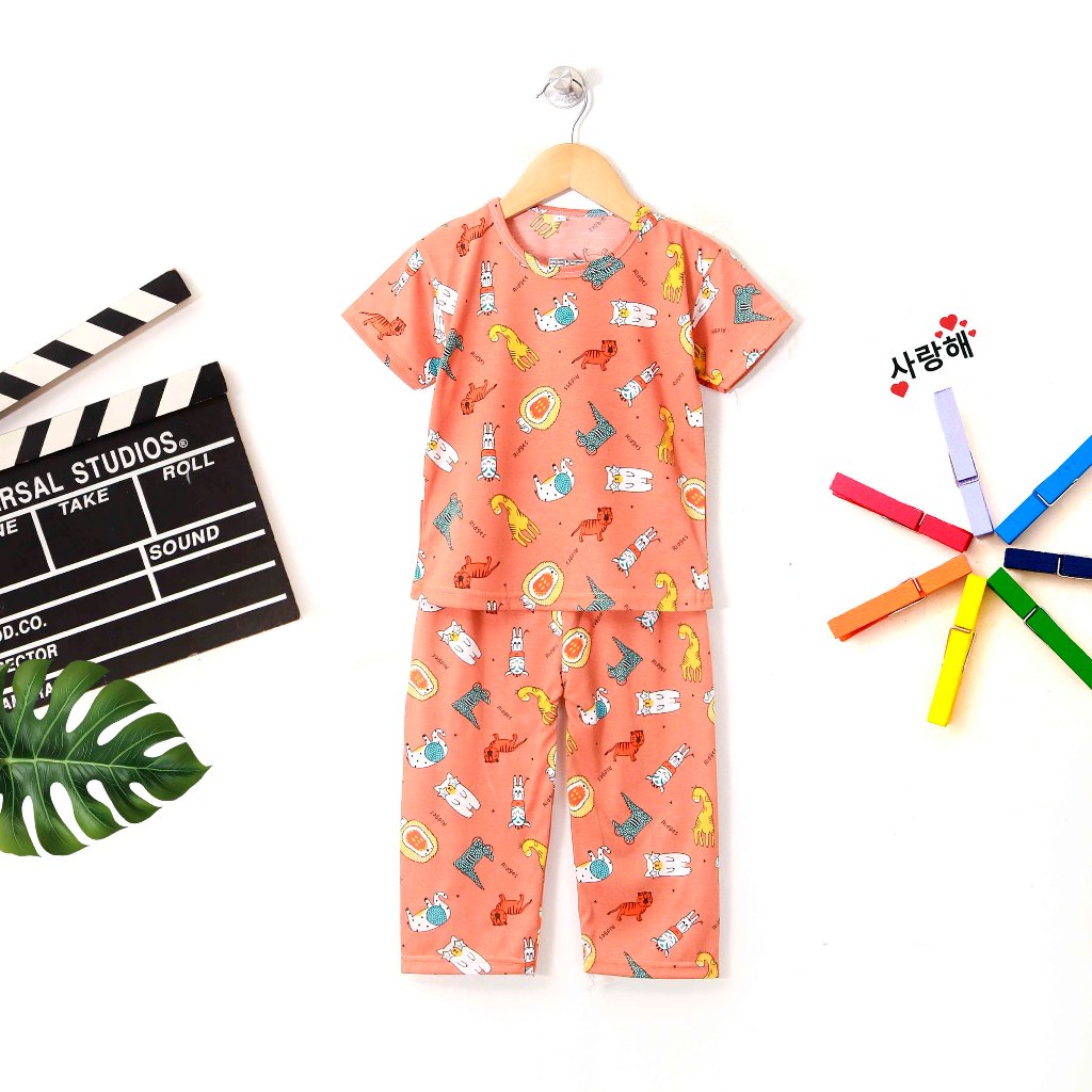FOYA Kids - Setelan anak full gambar motif animal/setelan baju tidur anak Laki - laki/Perempuan/Unisex usia 0 - 6 Tahun
