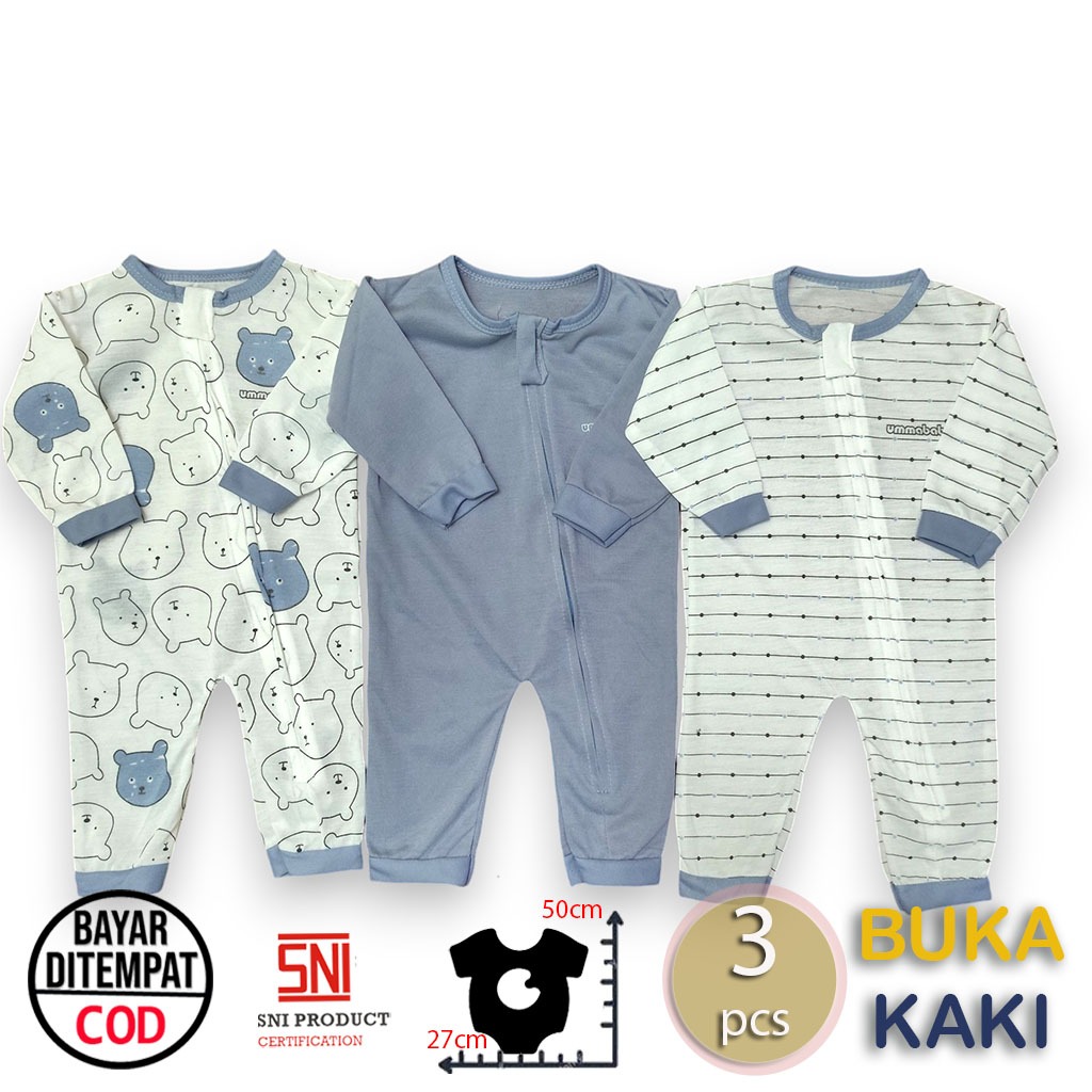 ummababyshop 3 pcs Sleepsuit Bayi Baru Lahir Buka Kaki Romper Bayi Jumper Bayi Panjang Baju Bayi Perempuan Laki Laki Set