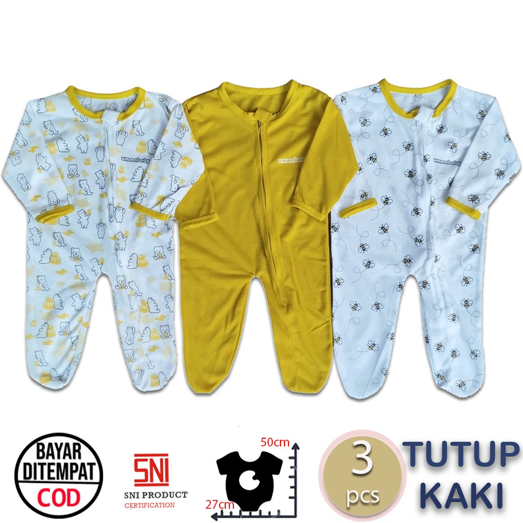 ummababyshop 3 pcs Sleepsuit Bayi Baru Lahir Tutup Kaki Romper Bayi Jumper Bayi Panjang Baju Bayi Perempuan Laki Laki Se