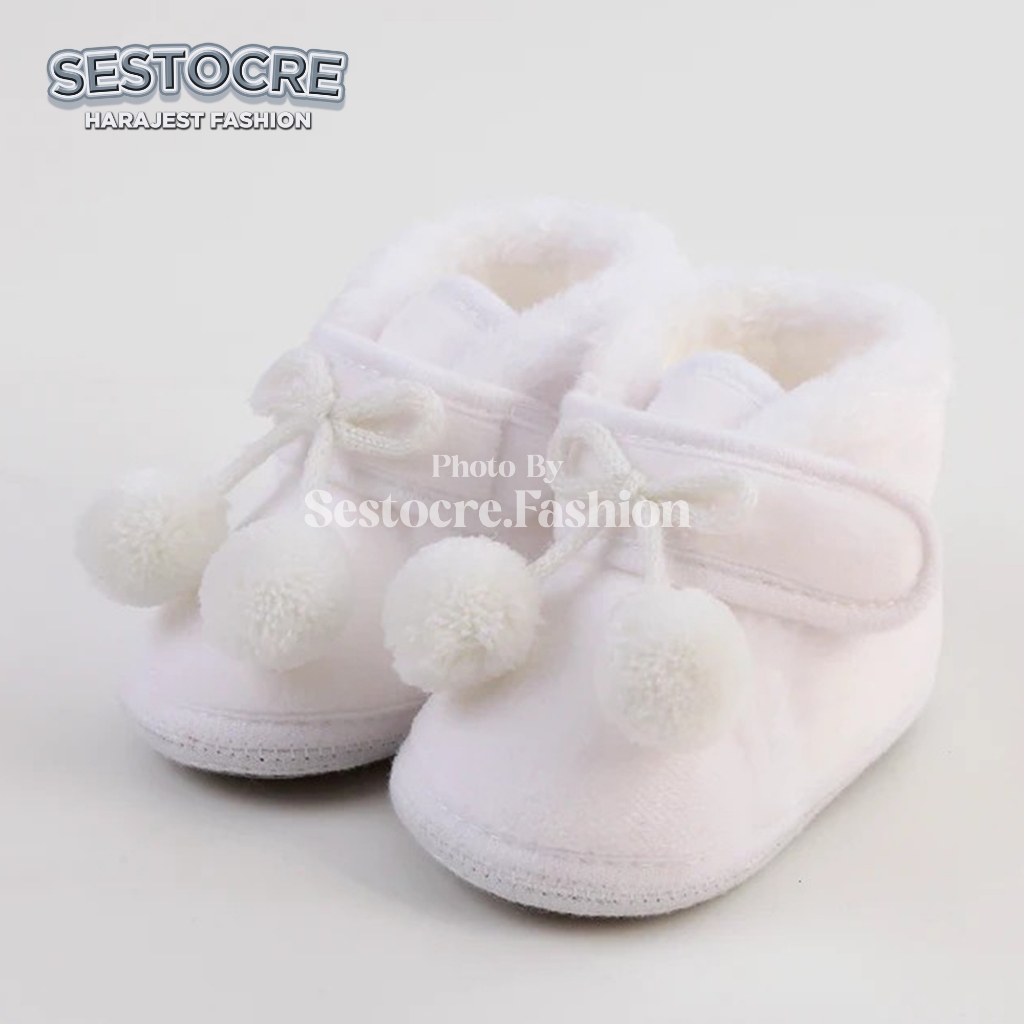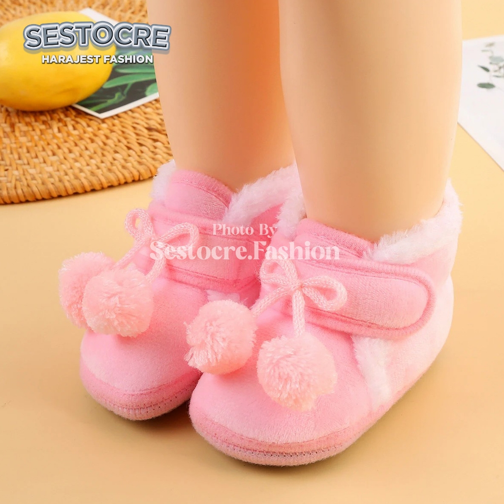 Sepatu Bayi Perempuan Boots Hairball Cute 0 3 6 9 12 Bulan Baby Shoes Prewalker New Born Nyaman SoftSole Anti Slip Desig