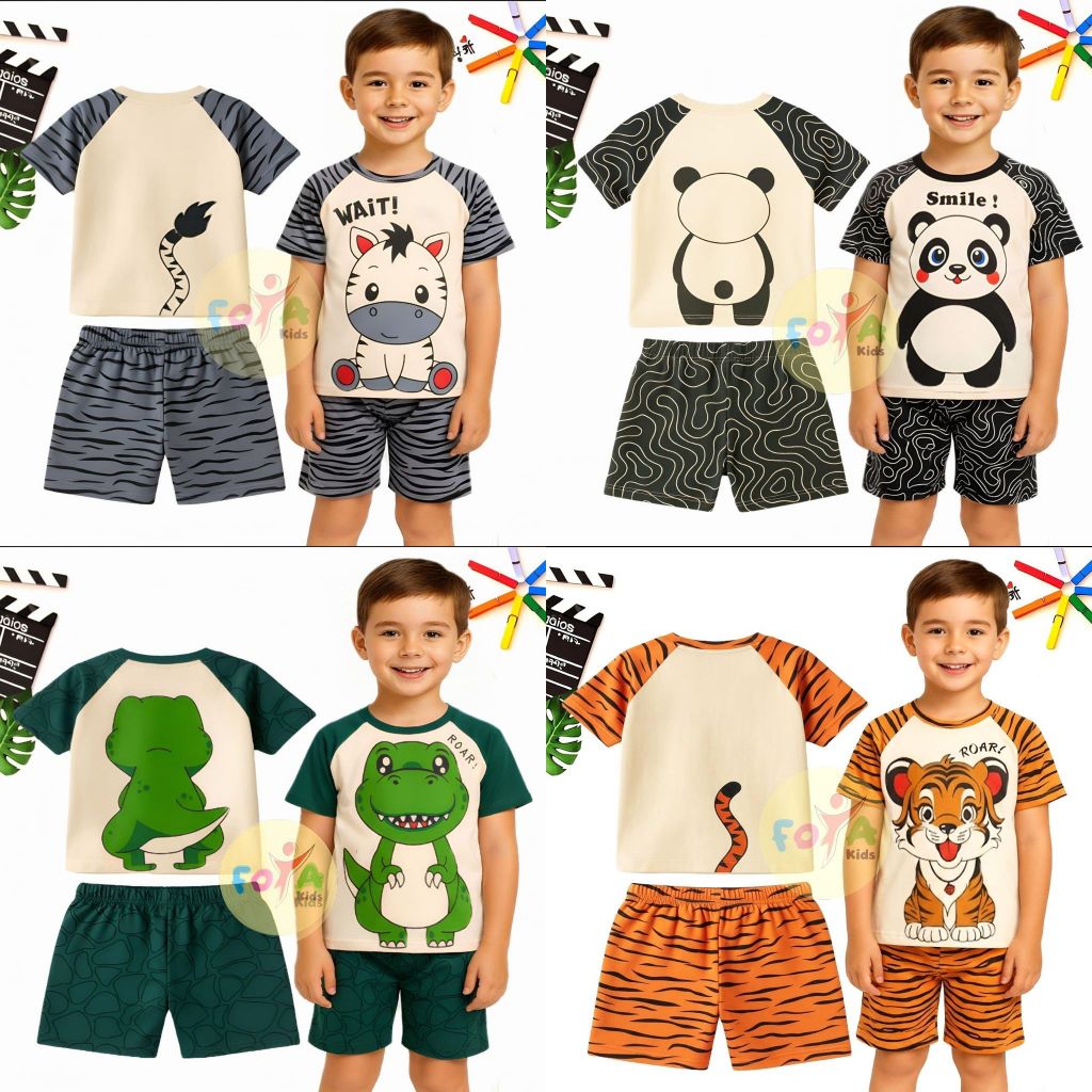 FOYA Kids - Setelan Premium KIMONO Usia 0-6 tahun/Setelan Murah Anak Motif Sablon/Setelan Celana Pendek Motif ZEBRA/TIGE