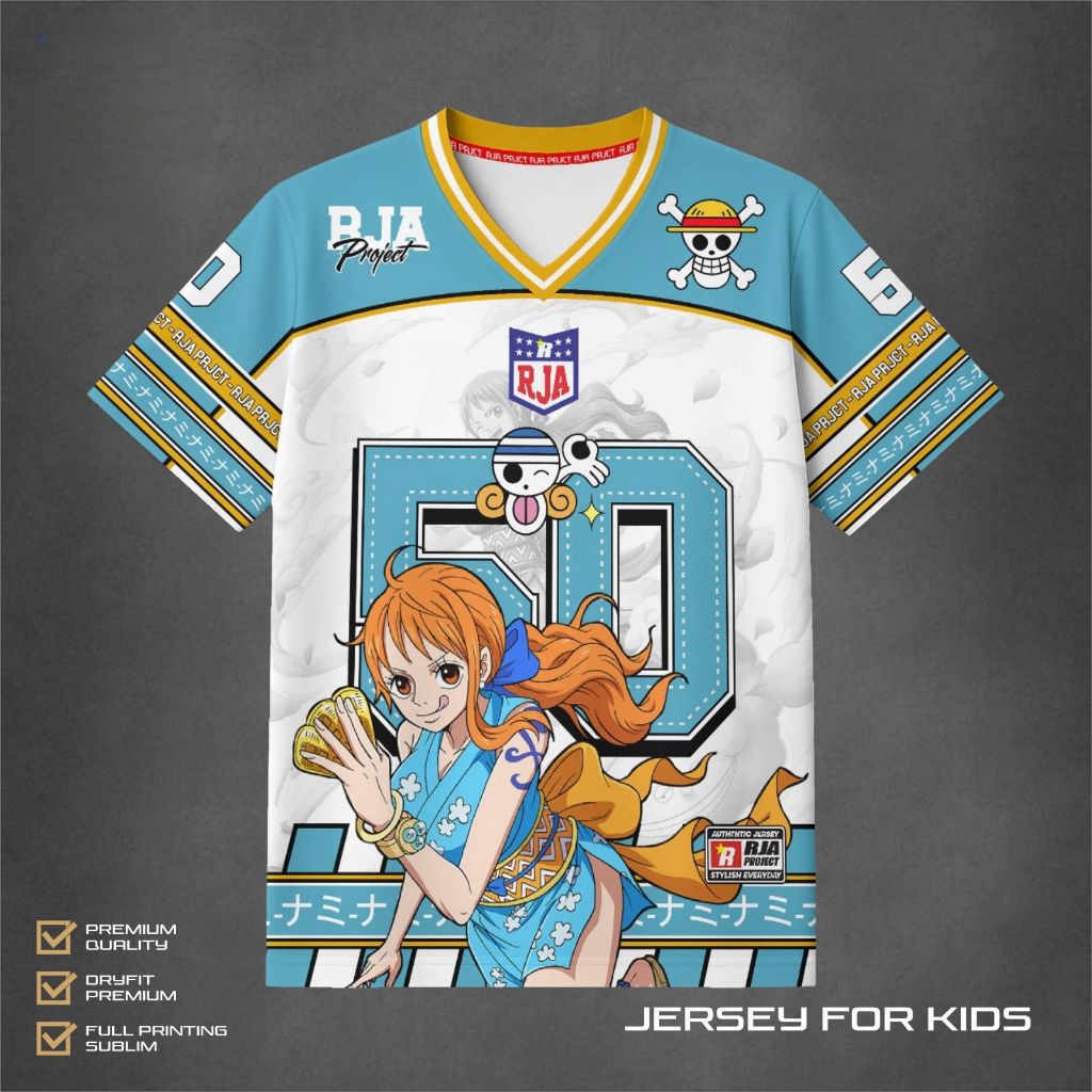 Jersey Anak Laki-Laki & Perempuan Motif Nami One Piece | Jersey Kids One Piece Nami Model Terbaru Premium Quality Full P