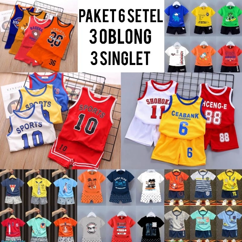 Paket isi 6 setel /setelan singlet anak cowok/setelan anak laki laki/random