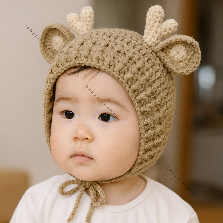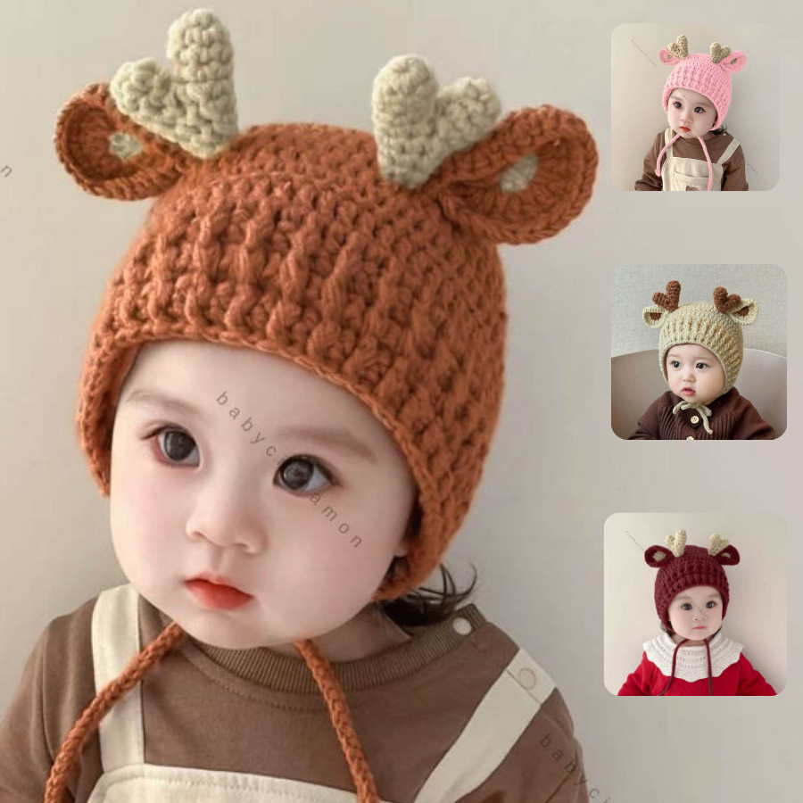 Kupluk Rajut Baby Rusa Kepang Bayi - 5 Tahun / Topi Ala Korea Import Premium Newborn Anak Laki Perempuan Bayi 0 3 6 12 1