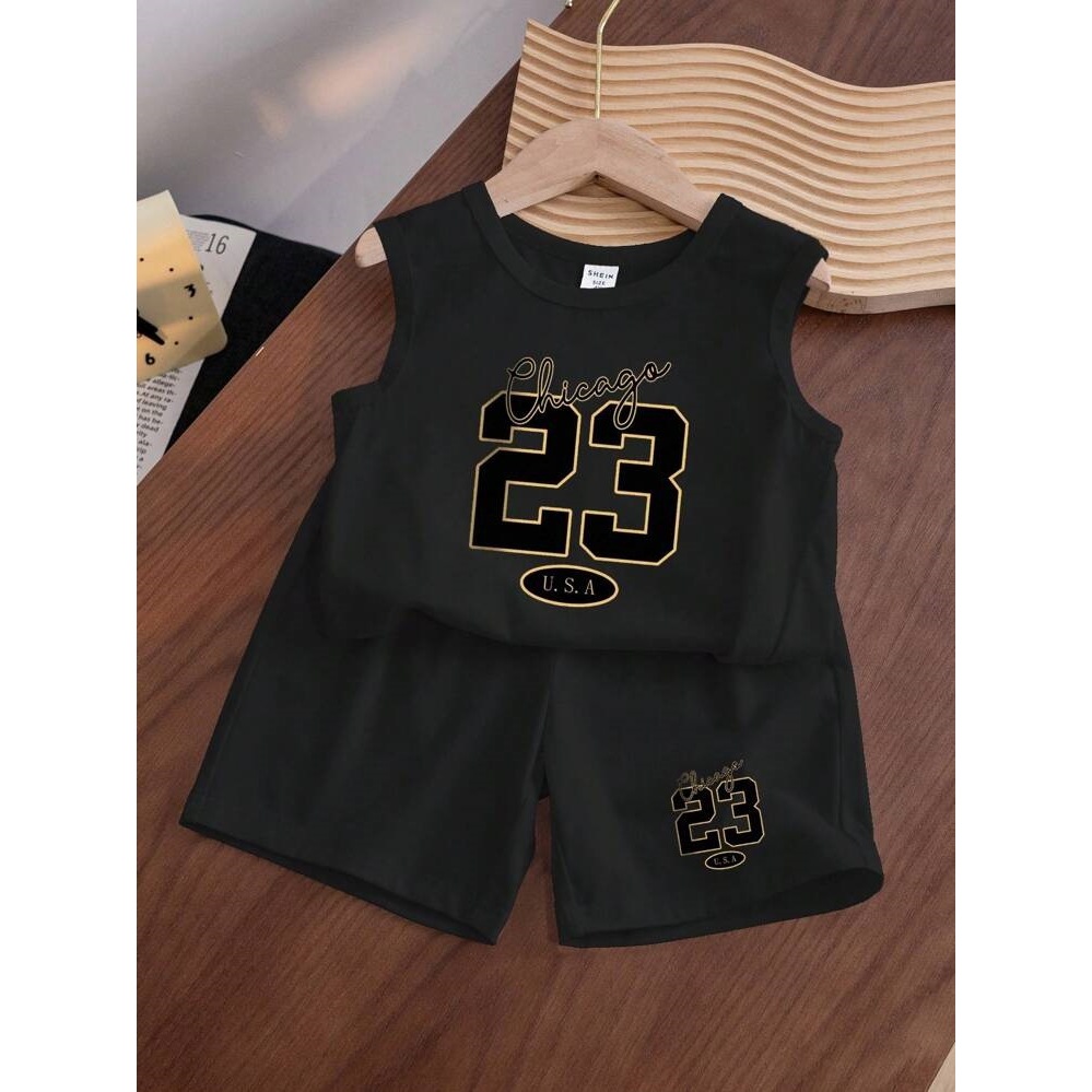 Setelan Baju Anak Katun Basket Chicago Ukuran 1-4