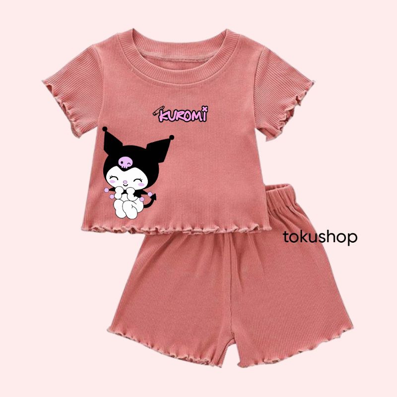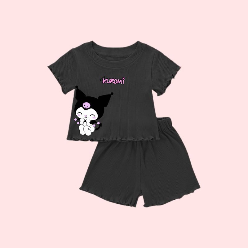 tokushop set kenit logo kuromi setelan anak perempuan 1/4 tahun