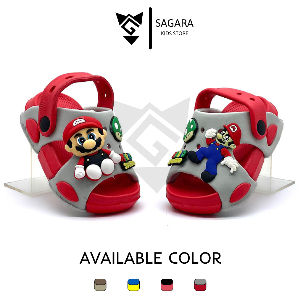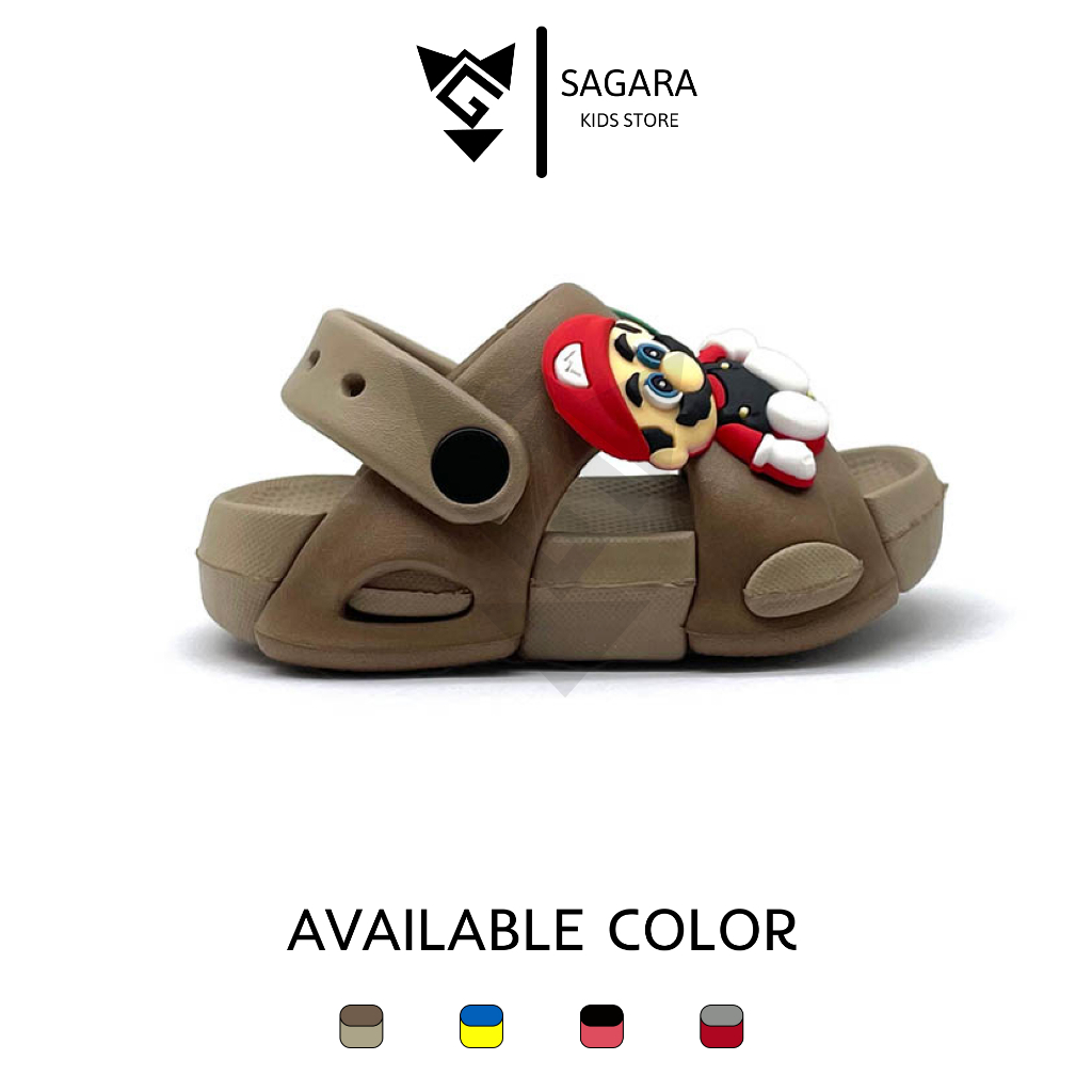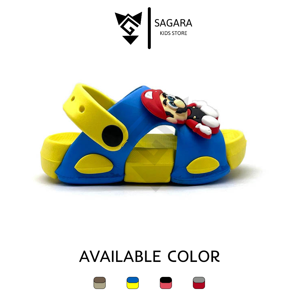 Sandal Anak Laki-Laki Selop TALI BELAKANG Karakter Mario Terbaru Anti Slip Usia 1-5 tahun