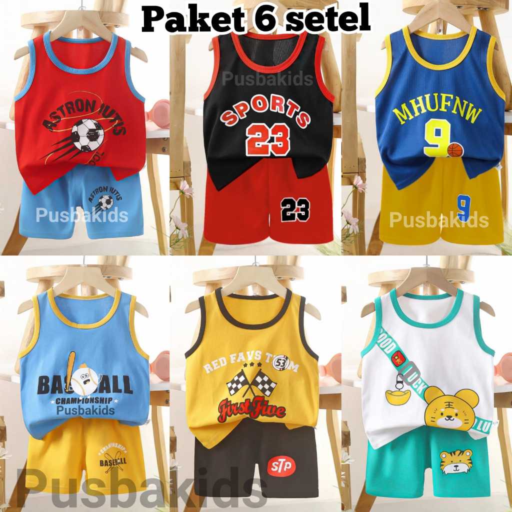 PAKET ISI 6 SETEL/ SETELAN SINGLET COWOK/ SET ANAK LAKI-LAKI
