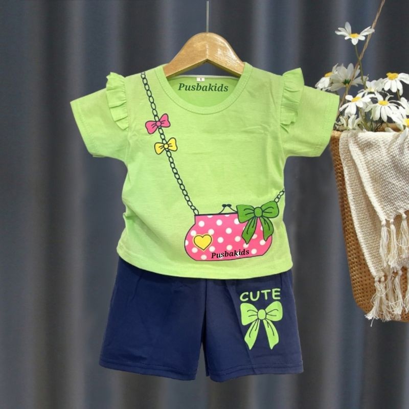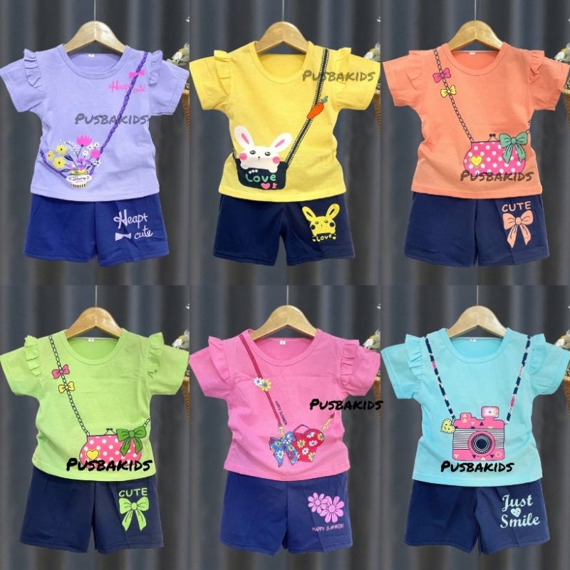 Pusbakids-Setelan Ruffle - Set baju anak cewek 0-8 tahun model tangan rumbai