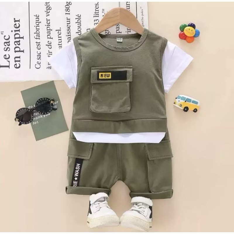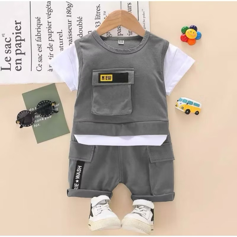 SETELAN BAJU ANAK LAKI LAKI SET BAJU KAOS DAN CELANA PENDEK 1-5TAHUN TERLARIS