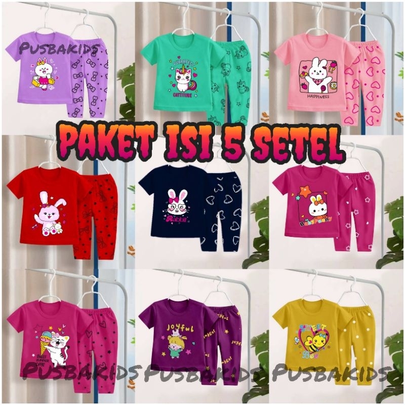 PAKET BAJU ANAK 6 SETEL/ Setelan anak perempuan labubu/setelan anak cewek celana panjang & celana pendek/ Stelan anak La