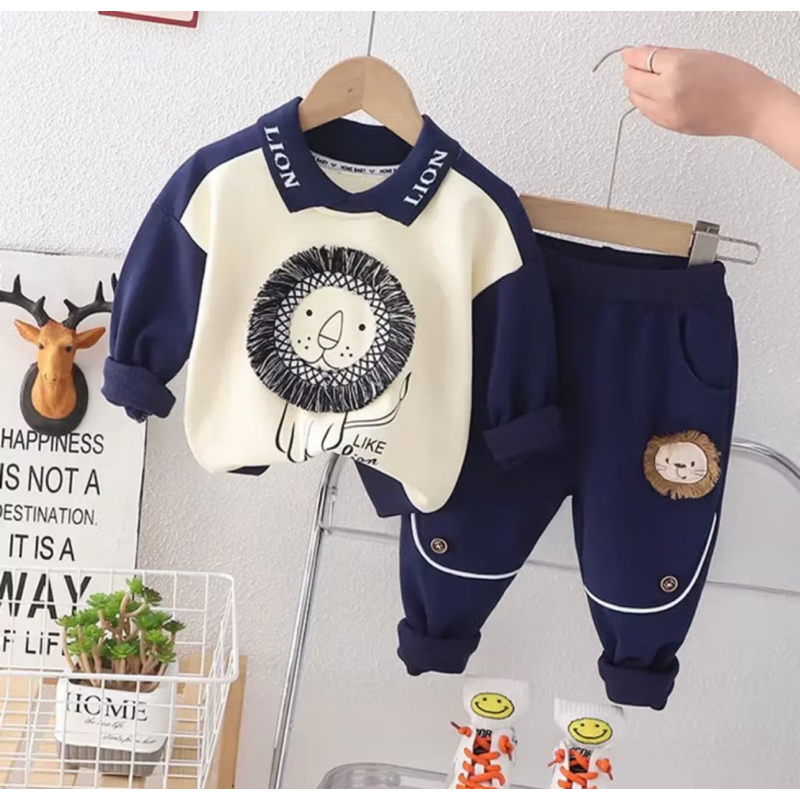 Setelan Sweater Anak Celana Joger Anak Laki Laki Motif Lion 1-5Tahun