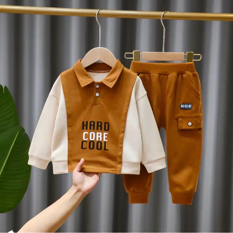 Setelan Baju Anak Lengan Panjang Dan Celana Panjang Set Baju Kerah kancing Lengan panjang anak laki laki dan perempuan m