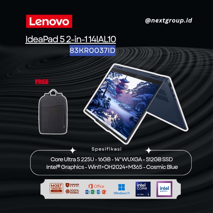Lenovo IdeaPad 5 2-in-1 14IAL10 37ID/38ID - Intel Core Ultra 5-225U 16GB 512GB TS 14.0 IPS WIN11 OHS2024 M365