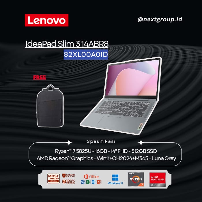 Lenovo IdeaPad Slim 3 14ABR8 82XL00A0ID Ryzen 7-5825U 16GB 512GB Win11+OH2024
