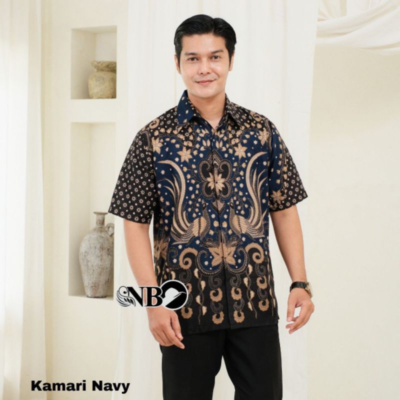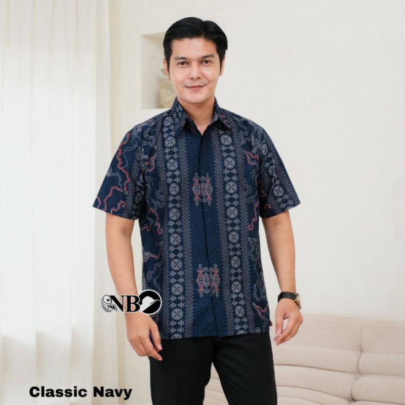 NAVY Batik Pria Lengan Pendek Casual Modern Kekinian Batik Pria Batik Wanita Batik Couple Batik Pria Lengan Panjang Leng