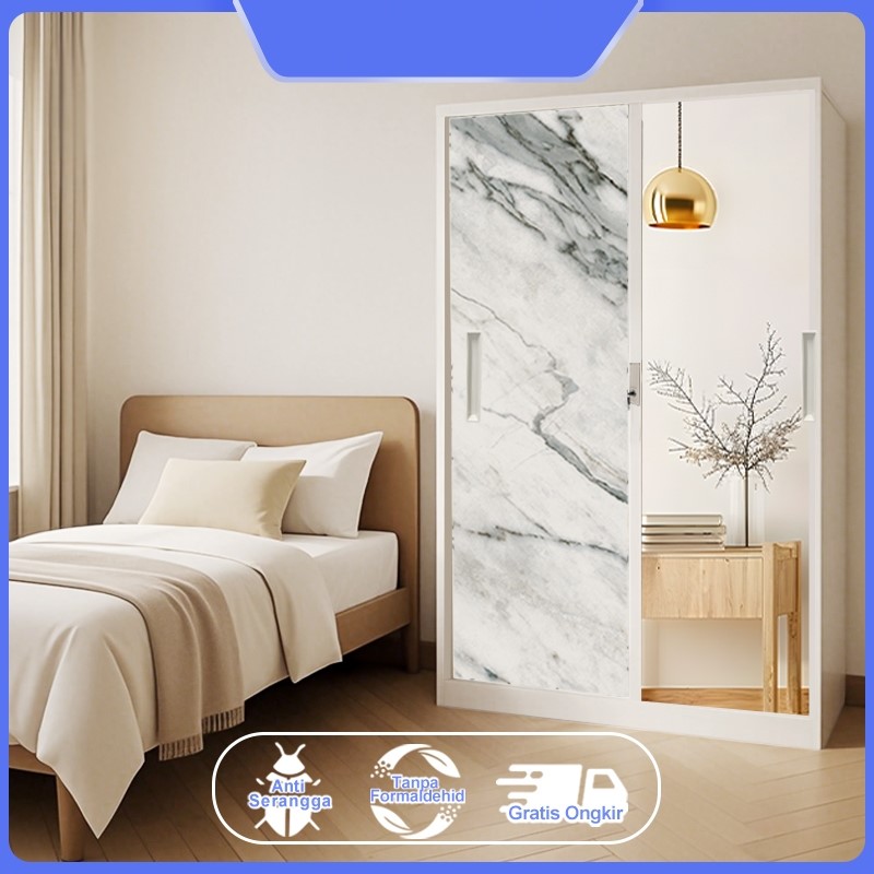 Lemari Pakaian Besi 2 Pintu Sliding Jumbo Panjang-120cm 1 Batang plastik 2/3/4 full kaca jumbo lemari besi baju terlaris