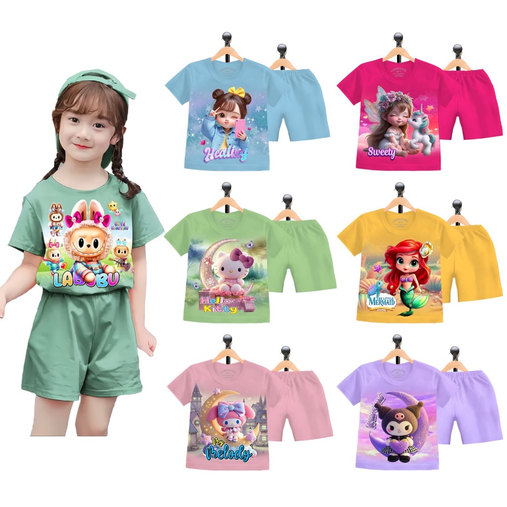 ORTkids Paket Hemat Isi 6pcs/3pcs Setelan Anak Perempuan Motif Random Usia 1-8 Tahun Fashion Anak Kekinian Warna Random