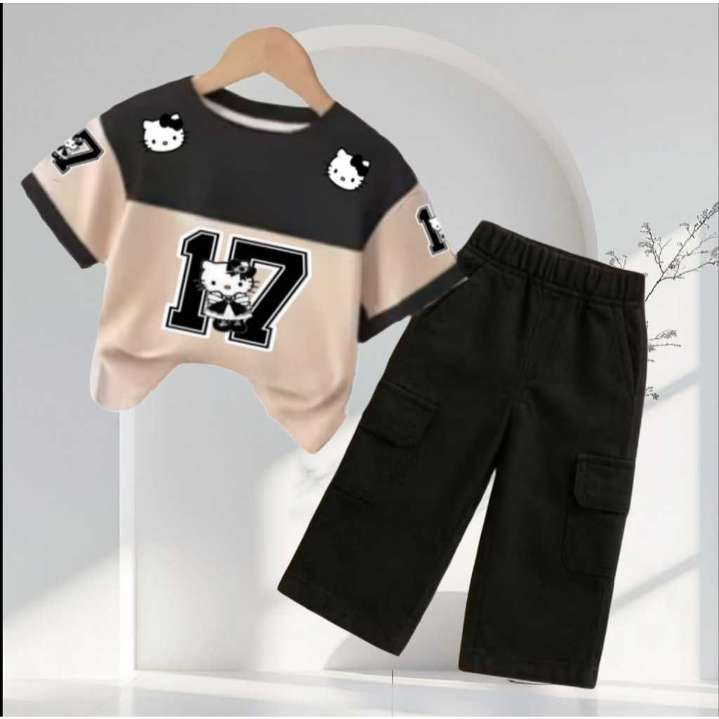 setelan anak cewek jersey terbaru 2-12 thn/baju anak perempuan one set lengan pendek