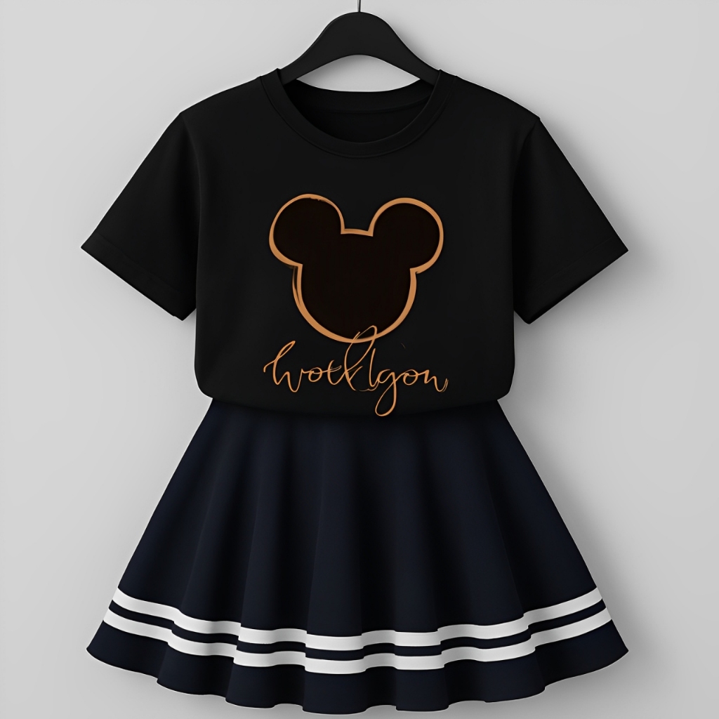 Setelan Baju Anak Perempuan Lucu Usia 1-10 Tahun | Kaos Kartun & Rok Korean Style Kekinian
