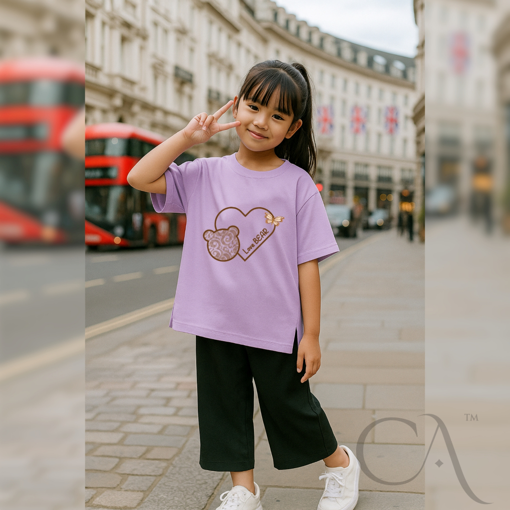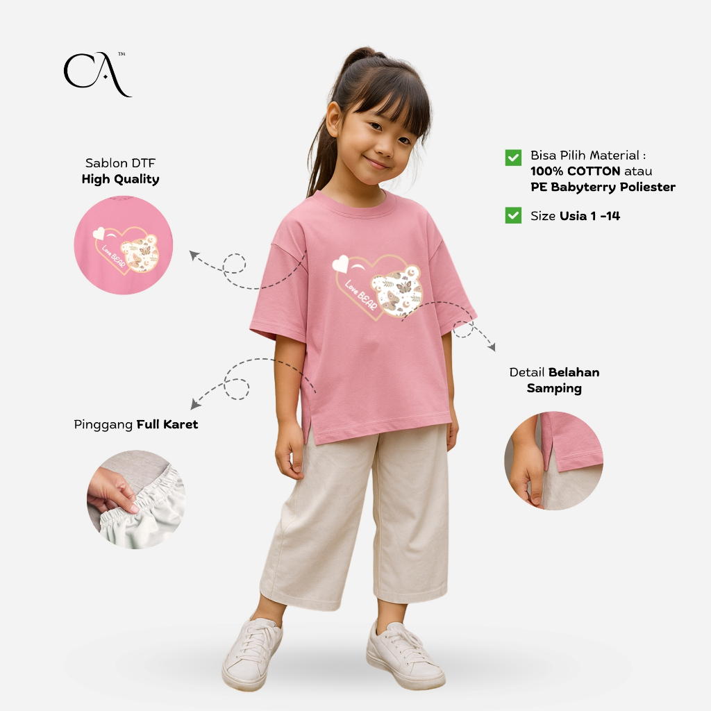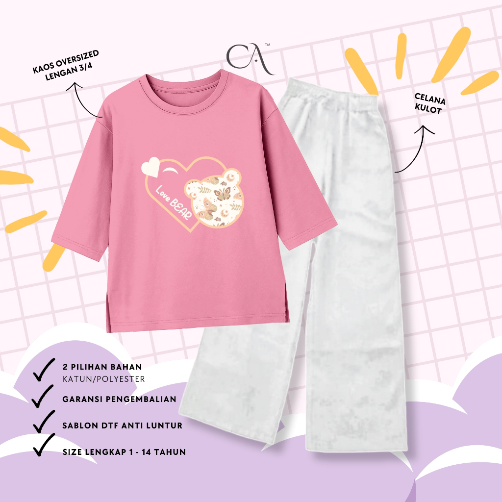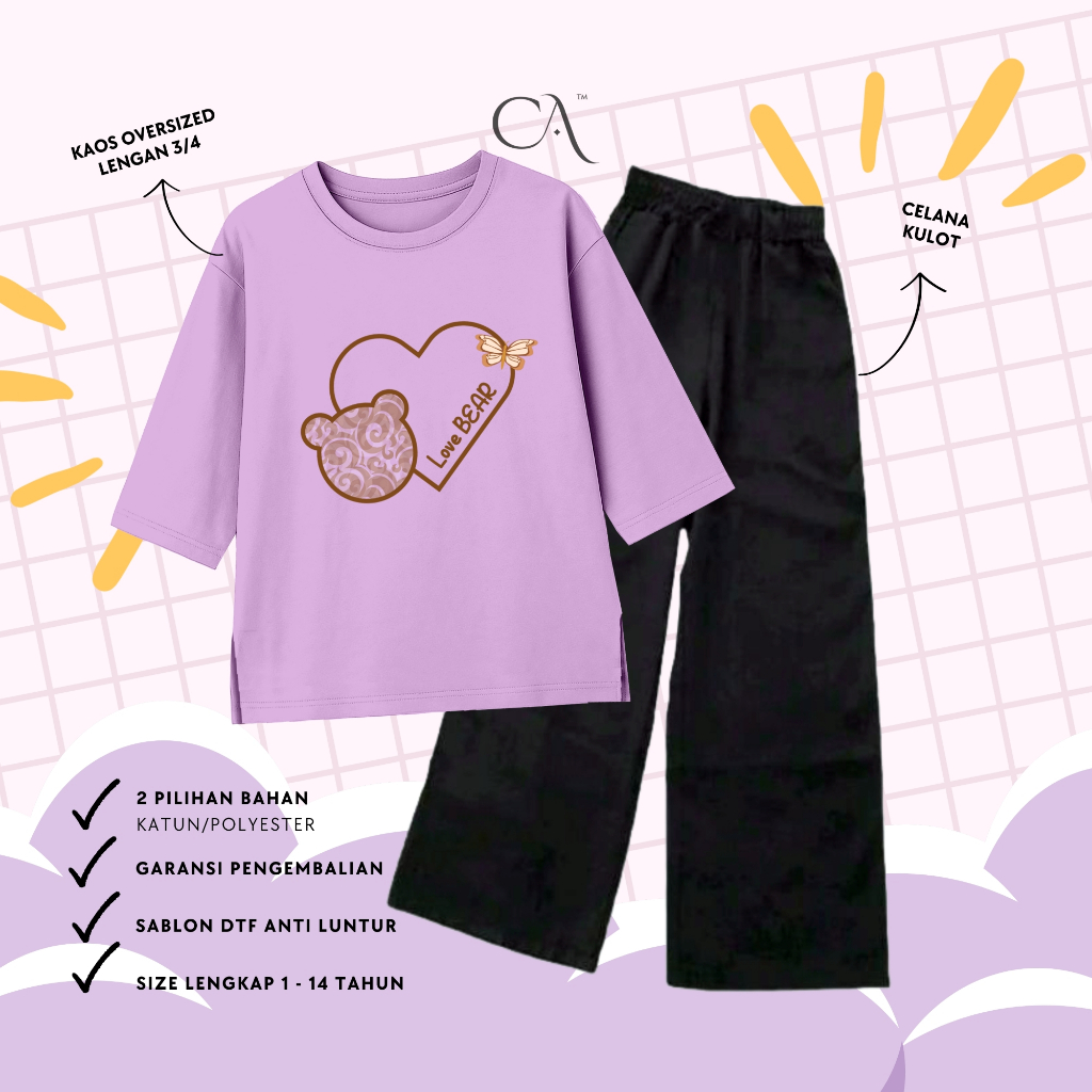 Setelan Kaos Oversize Belah Slit dan Kulot Anak Perempuan Love Bear Umur 6-14 tahun Part 1