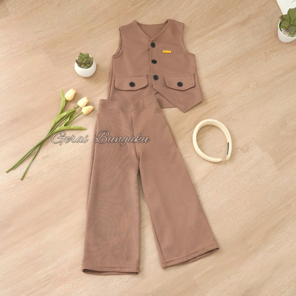 Oneset Anak Perempuan Setelan Rompi Anak Perempuan Korean Style Set Baju dan Celana Cutbray 1-11 Tahun
