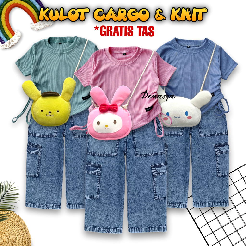 Pakaian Anak Perempuan Kekinian / Setelan Baju Knit dan Kulot Cargo Jeans Snowblue 1-12 Tahun