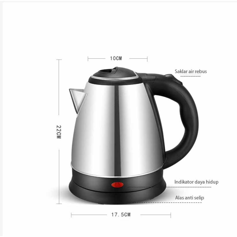 TEKO LISTRIK AIR PANAS 2 LITER KETTLE ELECTRIC STAINLESS STEEL 500 WATT