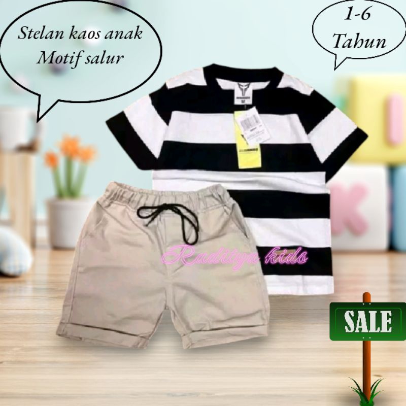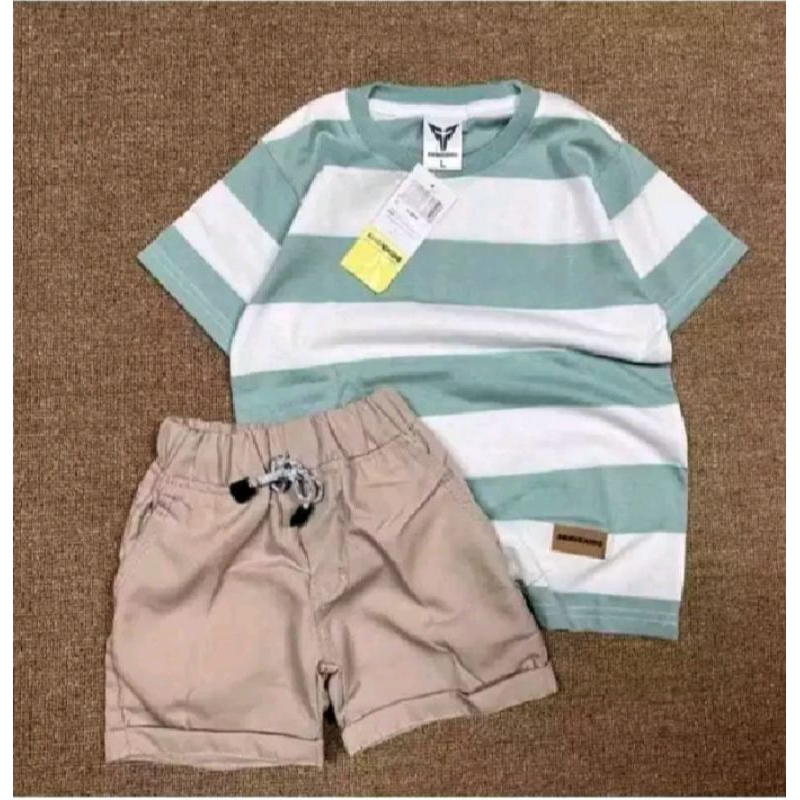 Setelan Kaos Anak Motif Salur Besar 1 Sampai 6 Tahun