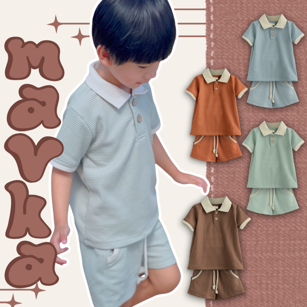 BELL & BO - MAVKA Setelan Polo Anak & Bayi Laki-Laki dan Perempuan Bahan Waffle Knit Premium