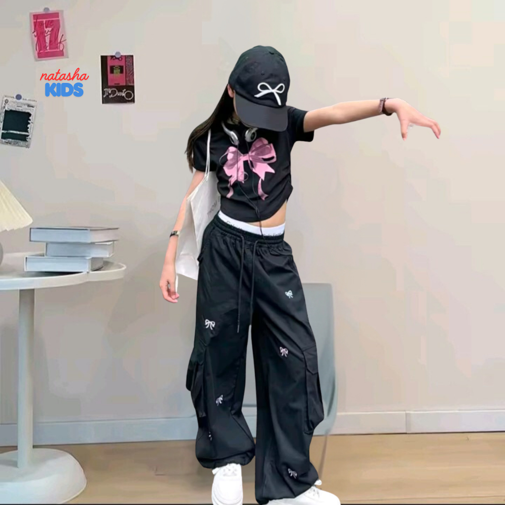 SETELAN ANAK PEREMPUAN CELANA KARGO DAN KAOS RAGLAN TERBARU BAHAN KATUN KOREA STYLE USIA 1-12 THN