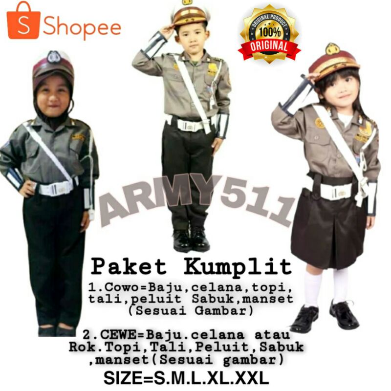 POCIL Baju Polisi Anak Setelan Karnafal Cewe Cowo Polwan Tk Seragam TNI S M L Xl XXL