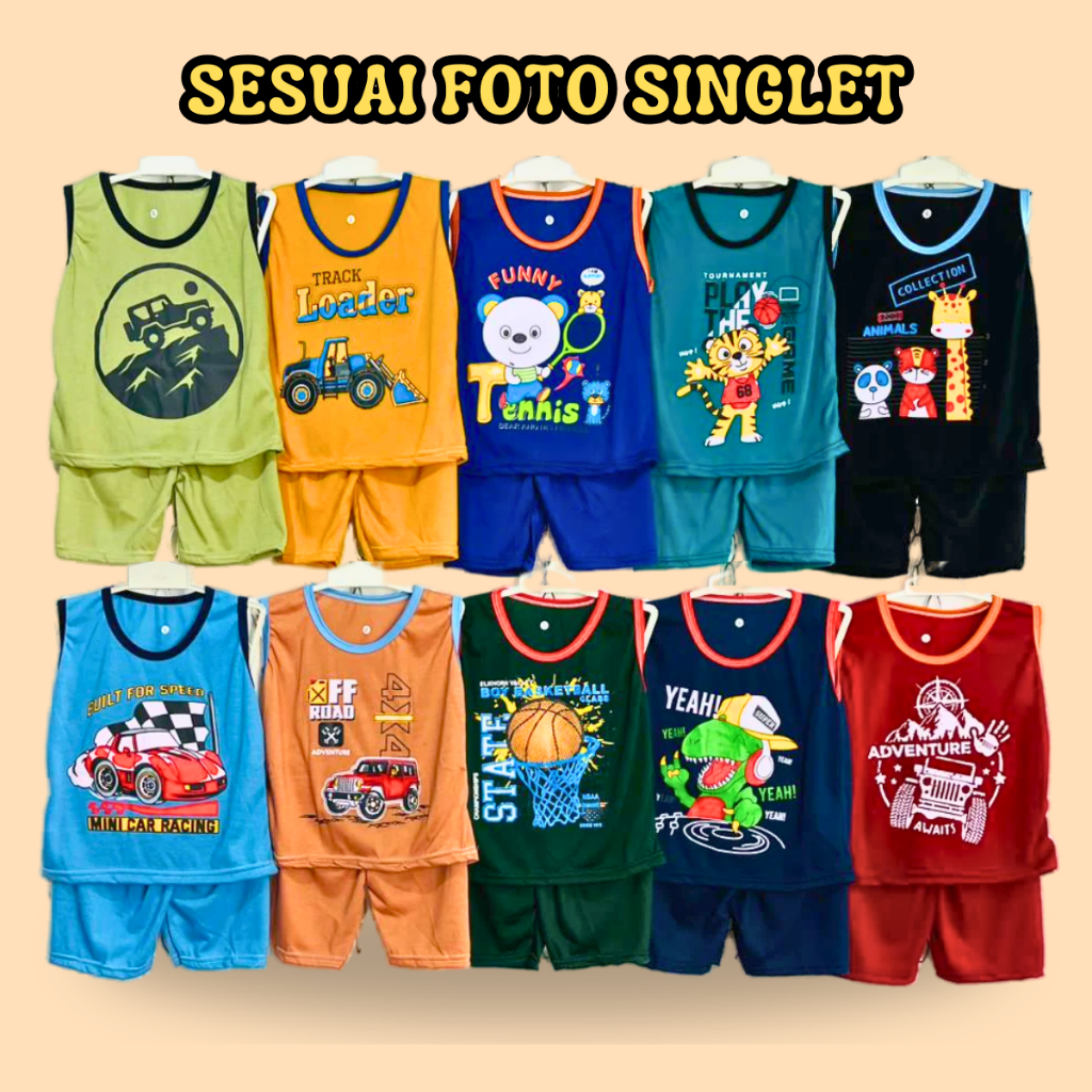 PAKET 10 SETEL Setelan Singlet Anak Laki Laki Baju Stelan Kutung Lekbong Cowok Cowo 4 - 5 Tahun. 34