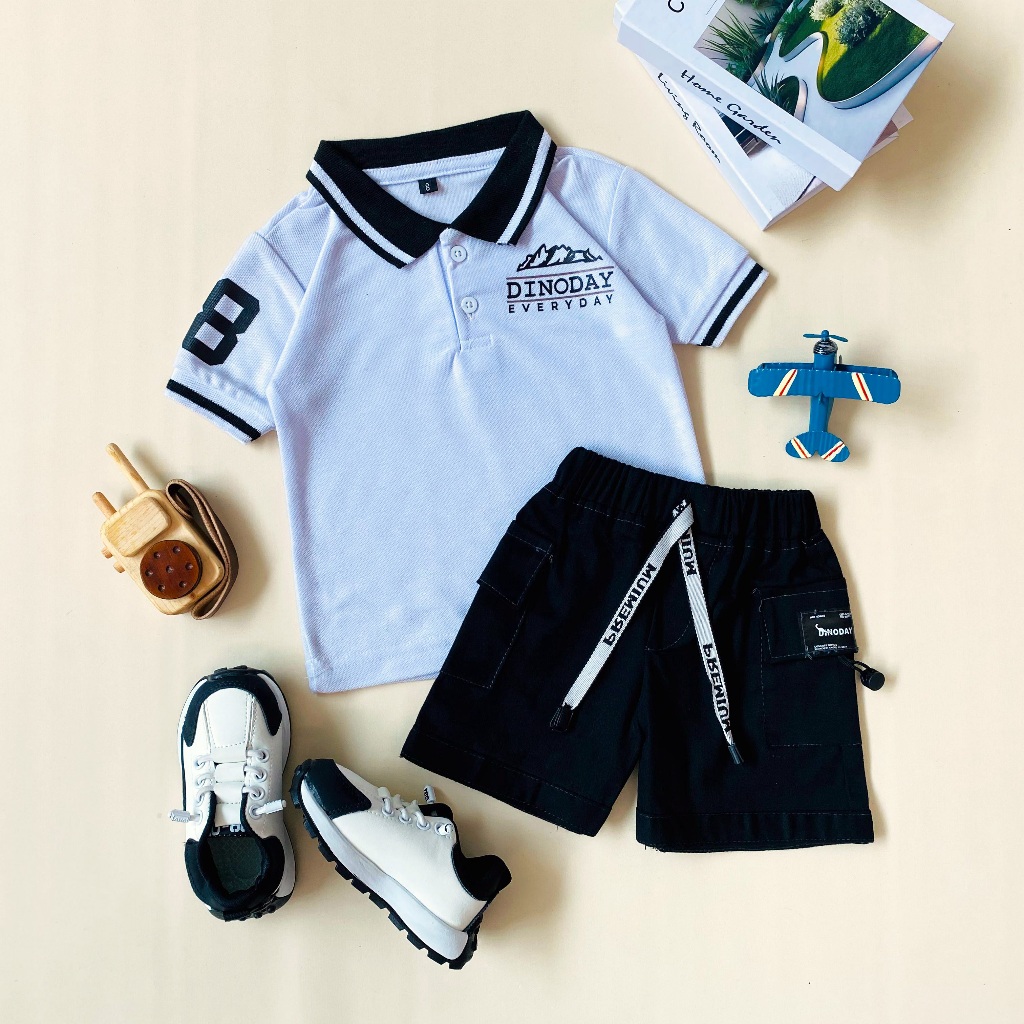 EstiShop x Dinoday Setelan Anak Laki Baju Wangki Kaos Polo Kerah Celana Cargo Korean 1 - 9 Tahun