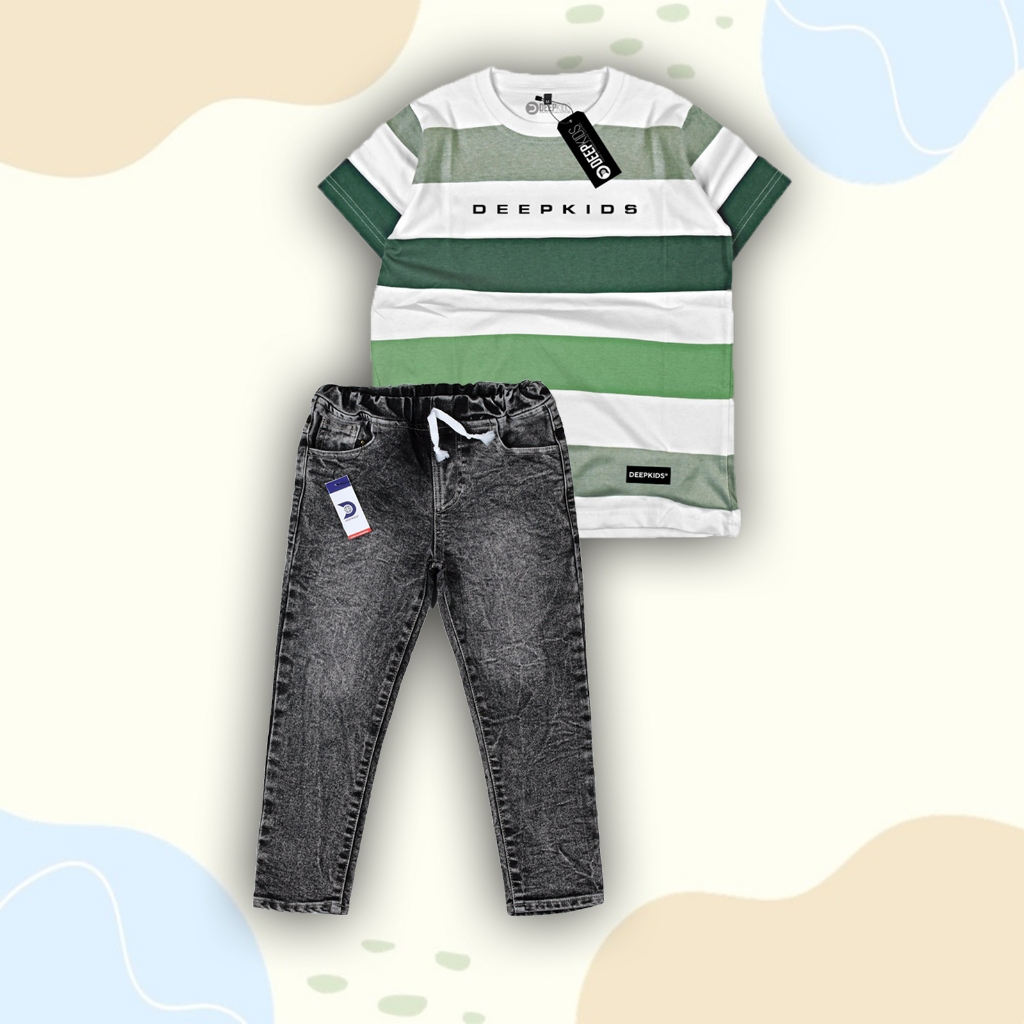 Setelan Anak Laki Laki Kaos Distro & Celana Jeans Panjang Premium Usia 1 2 3 4 5 6 7 8 9 10 11 12 Tahun Set Fullprint Je