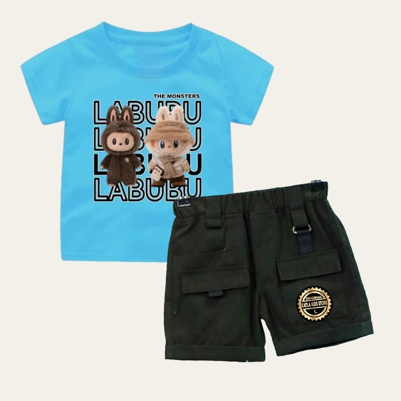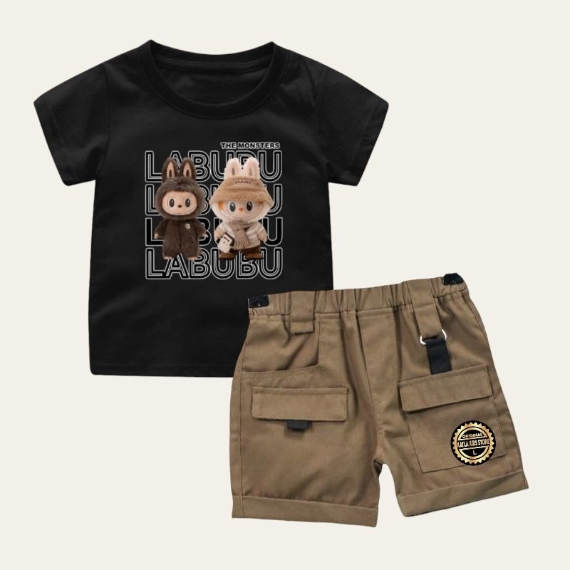 Kaylakids - Baju Kaos Setelan Anak Motif Labubu Terbaru Bahan katun kombed Dan Celana Cargo Premium Untuk Usia 1-9 Tahun