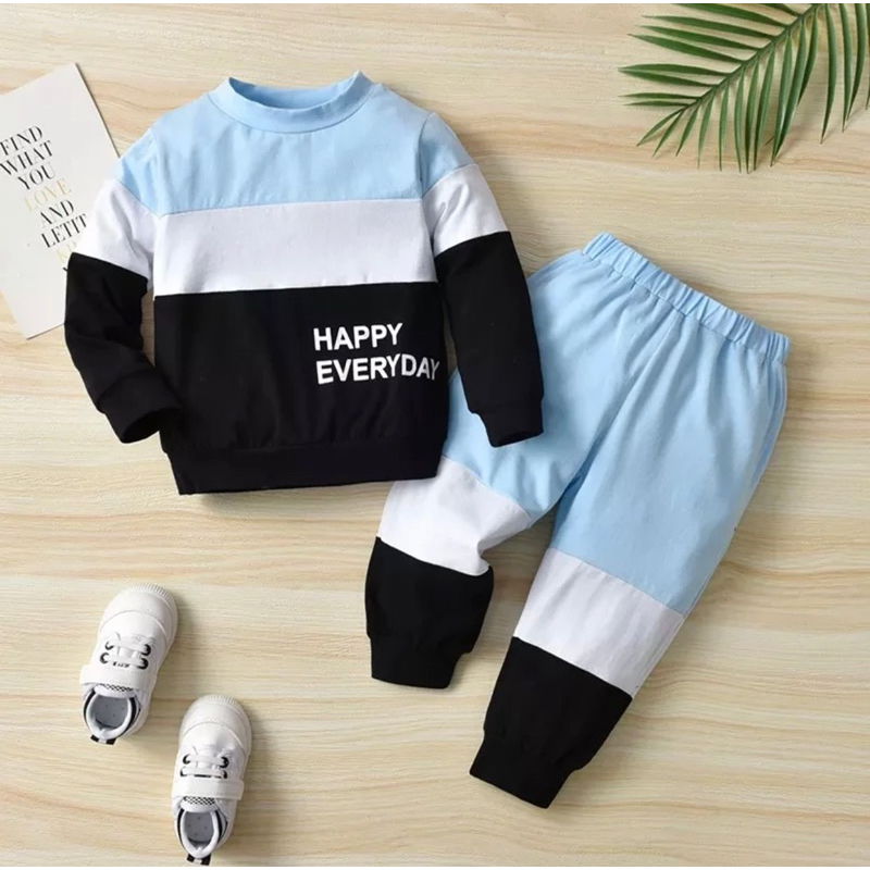 Setelan Anak Set Baju kaos dan Celana Panjang Anak Laki Laki dan Perempuan el Kombinasi Warna Usia 1-5Tahun