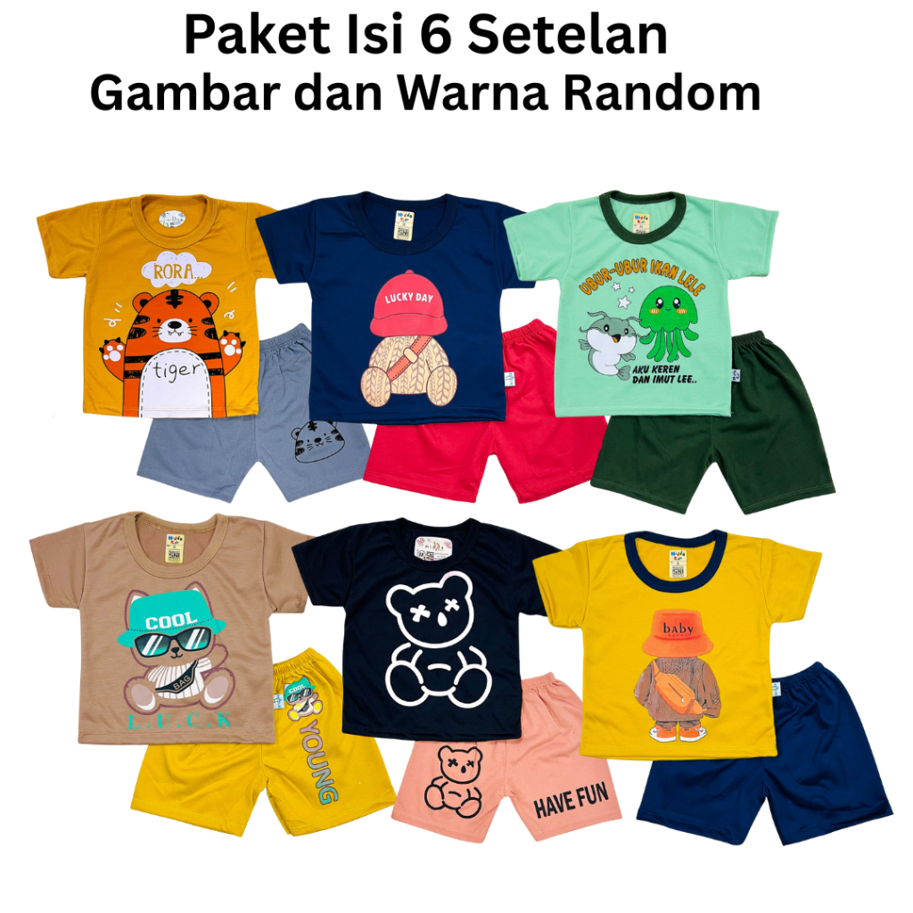6 PCS Setelan Anak Laki Laki Usia 0-2 Tahun SNI Setelan Oblong Baju Baby Gracia