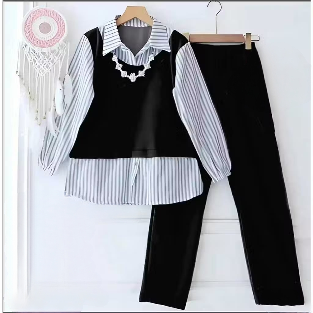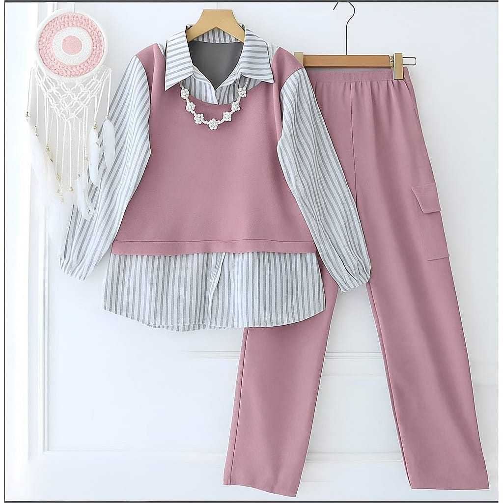Nadia Set Anak Perempuan Usia 3-12 Tahun Garis-Garis