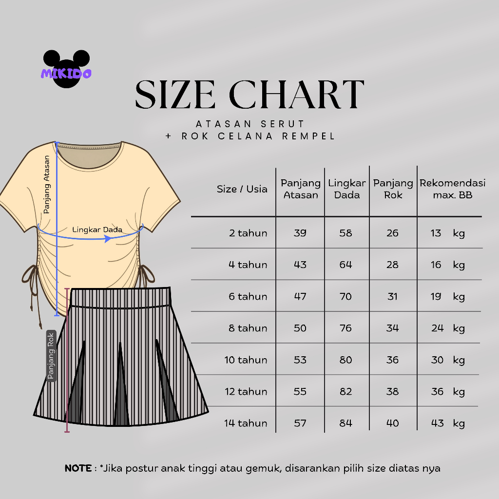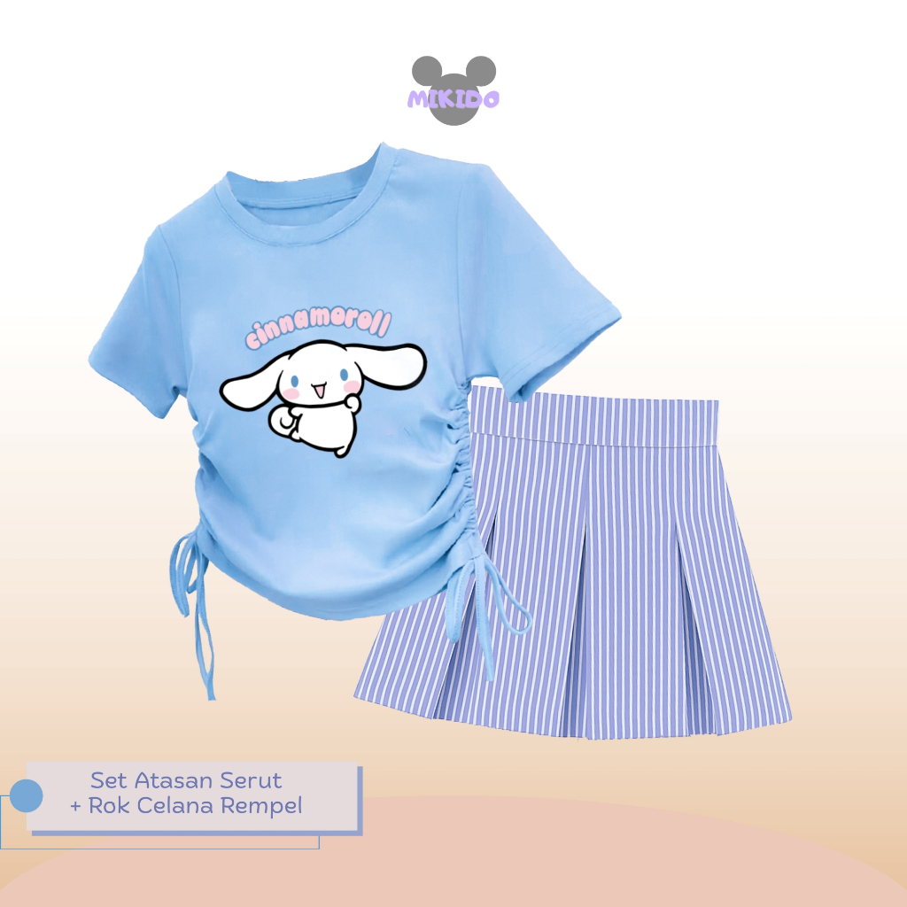 Setelan Kaos Serut Crop Top dan Rok Celana Rempel Salur Perempuan Kuromi Umur 1-14 tahun Part 2