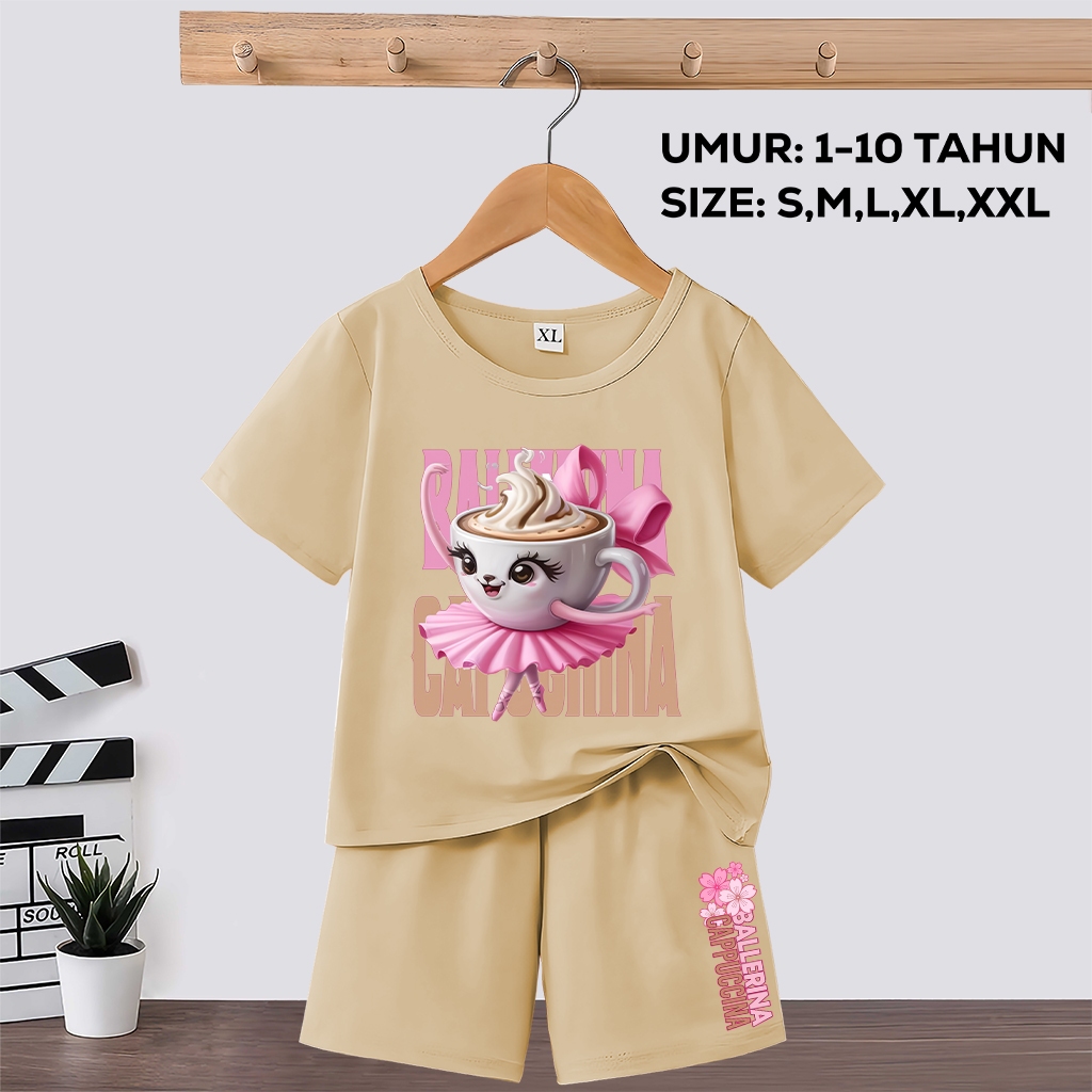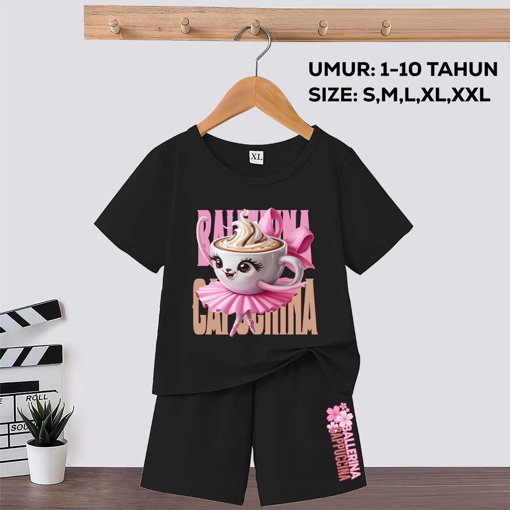 Baju Ballerina Cappuccina Anak Perempuan Umur 1-10 Tahun Lengan Pendek Set Anak Perempuan Anomali