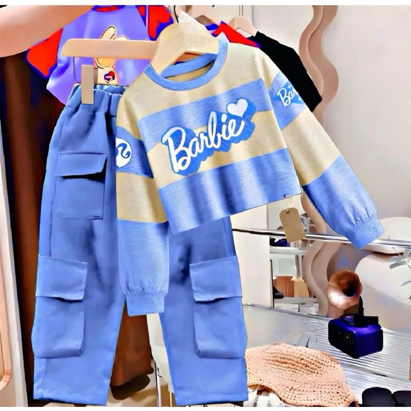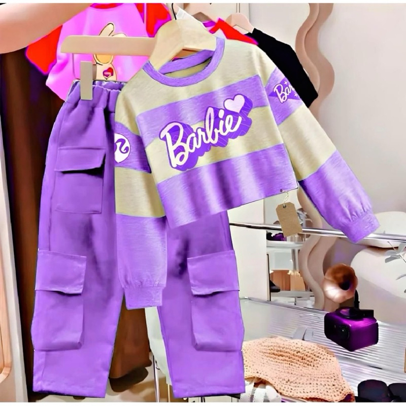 SETELAN KUROMI SWEATER SET CARGO ANAK PEREMPUAN BAJU DAN CELANA PANJANG EL BARBIE CARGO USIA 1-12TAHU