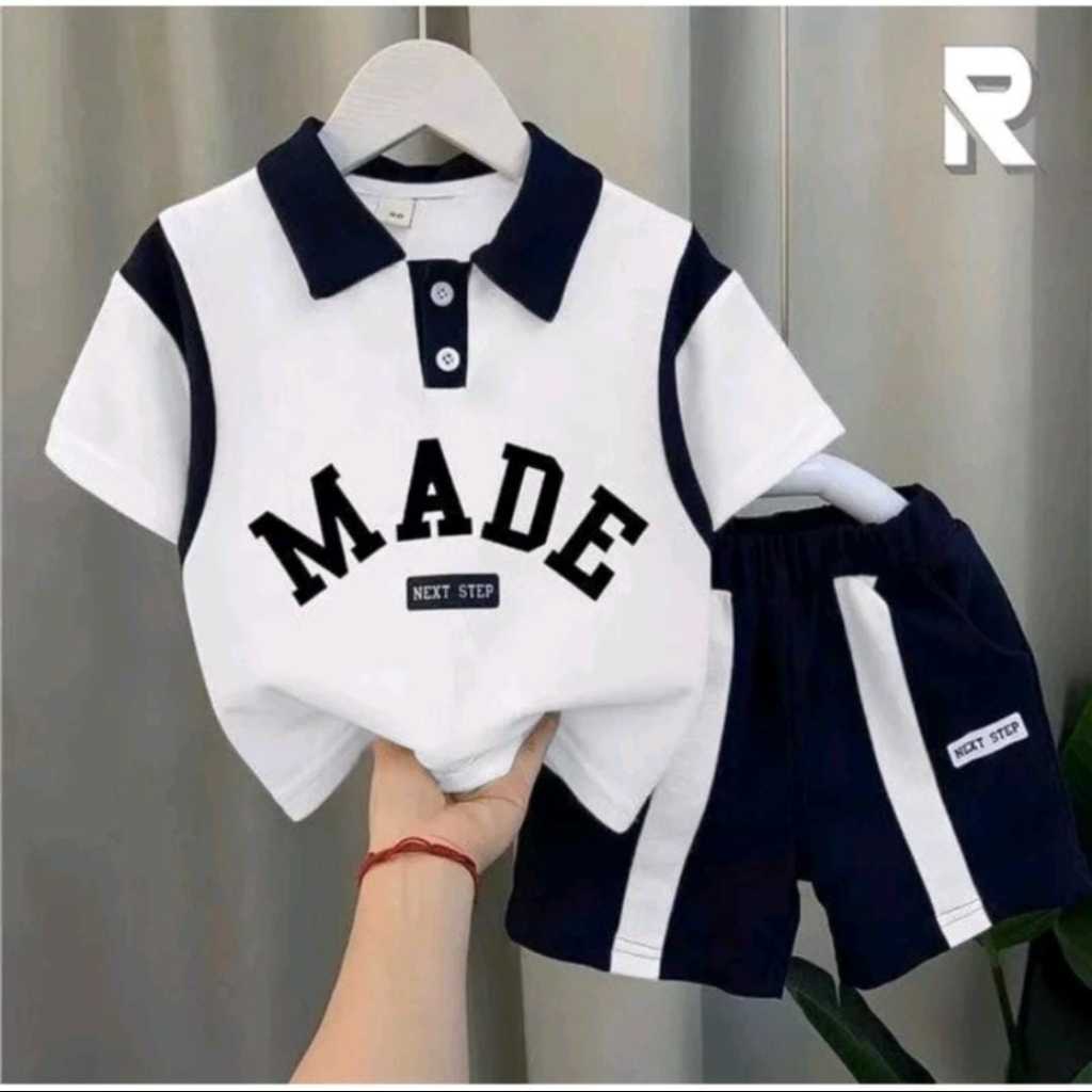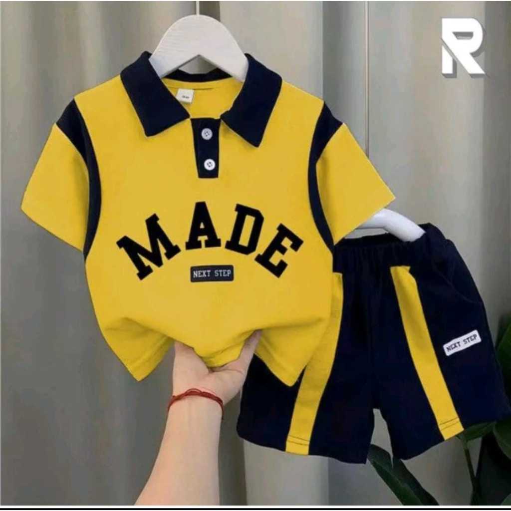 REBYSTORE SETELAN KAOS ANAK MOTIF MADE DAN CELANA DENIM PENDEK 1-5 TAHUN TERMURAH