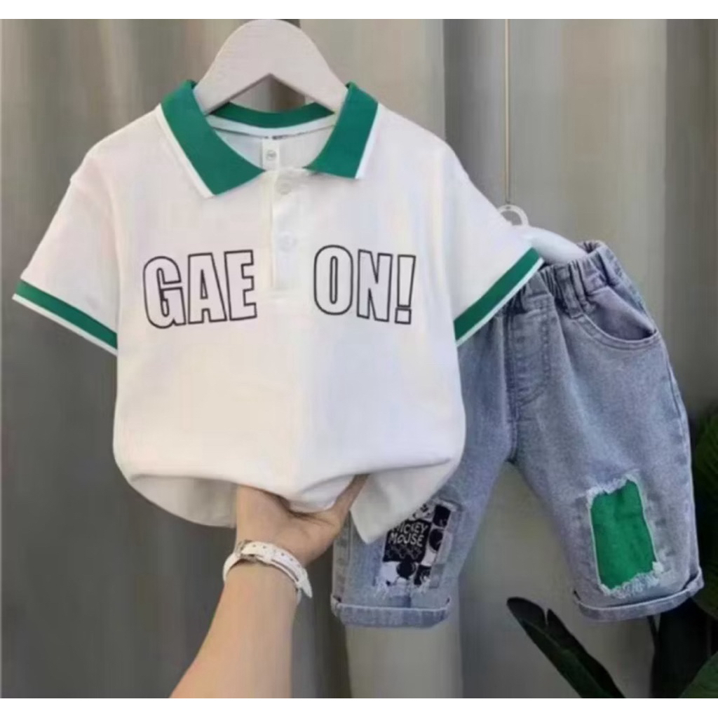 Setelan Anak Laki Laki Kaos Polo Jeans Denim Pendek Lucu Keren Usia 1-5 Tahun