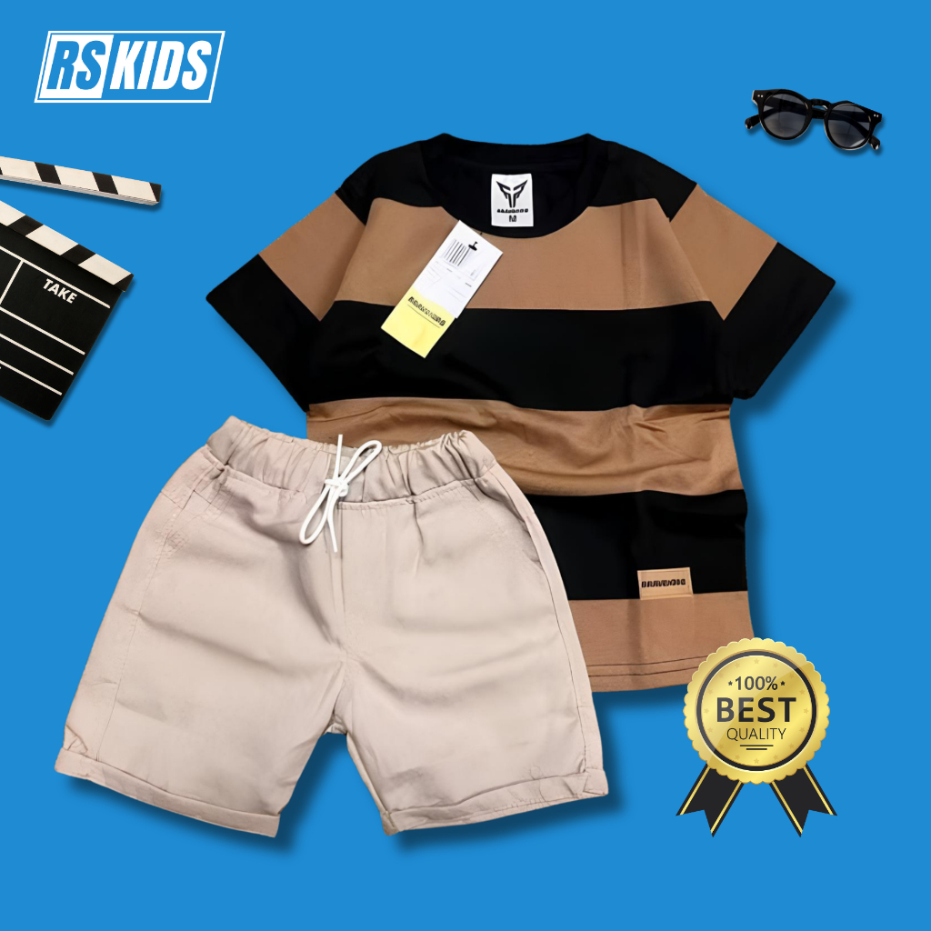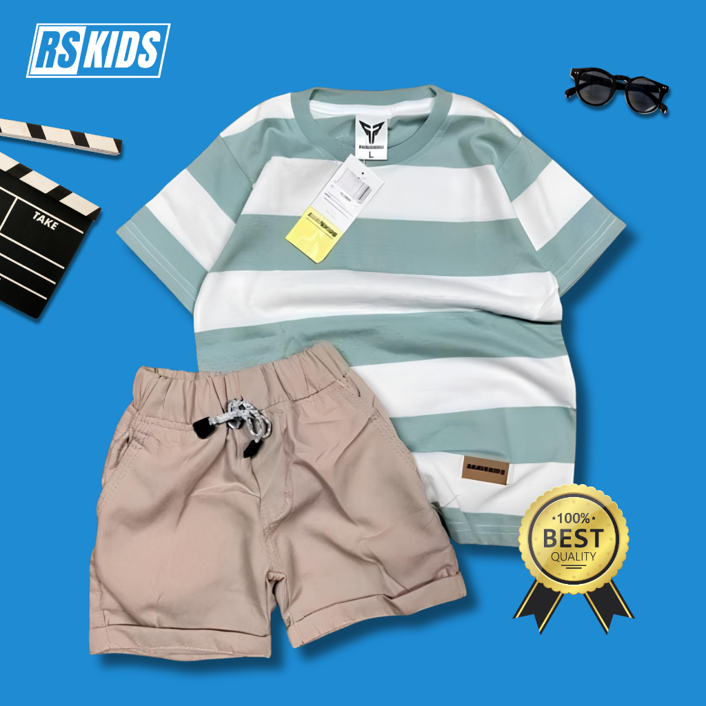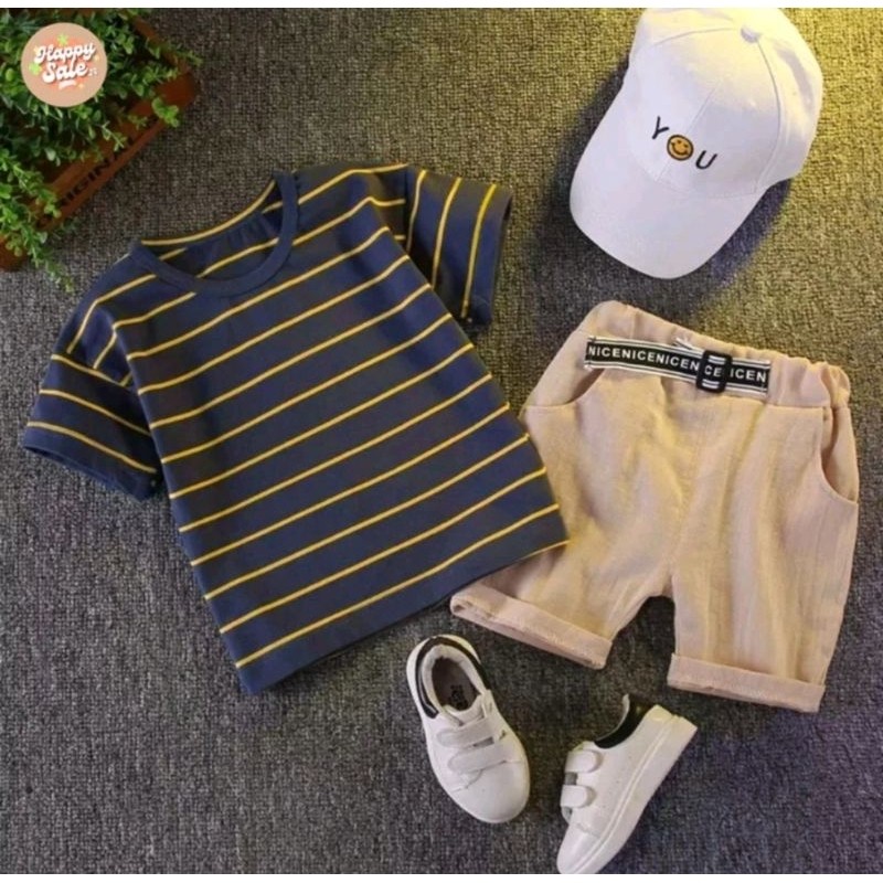 Setelan Anak Laki Laki Atasan Salur Besar Usia 1-6 Tahun