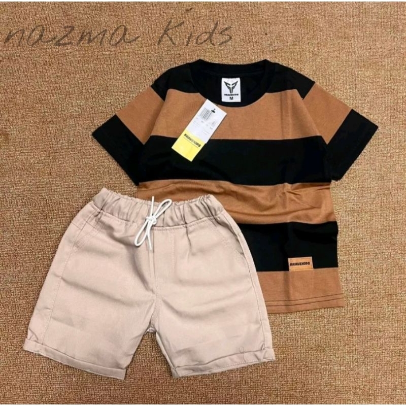 Setelan Anak Laki Laki Atasan Salur Besar Usia 1-6 Tahun