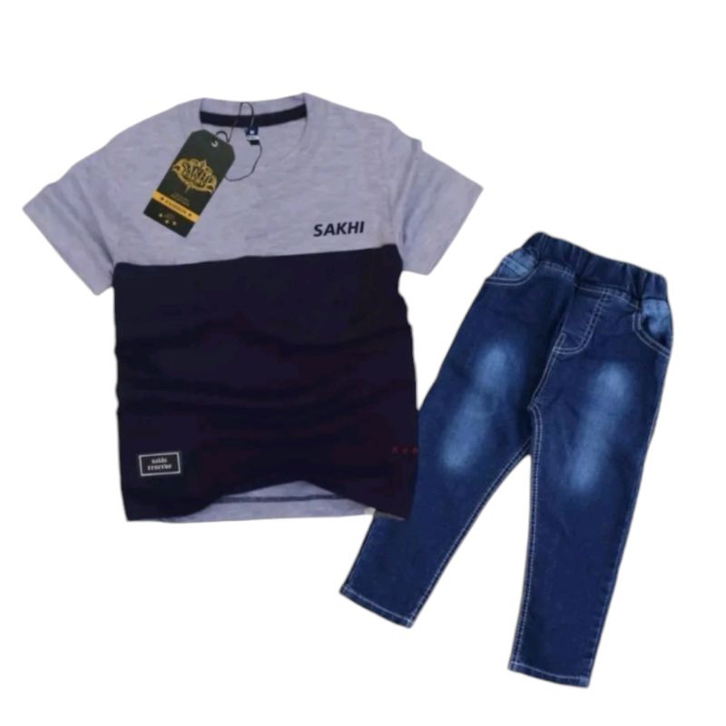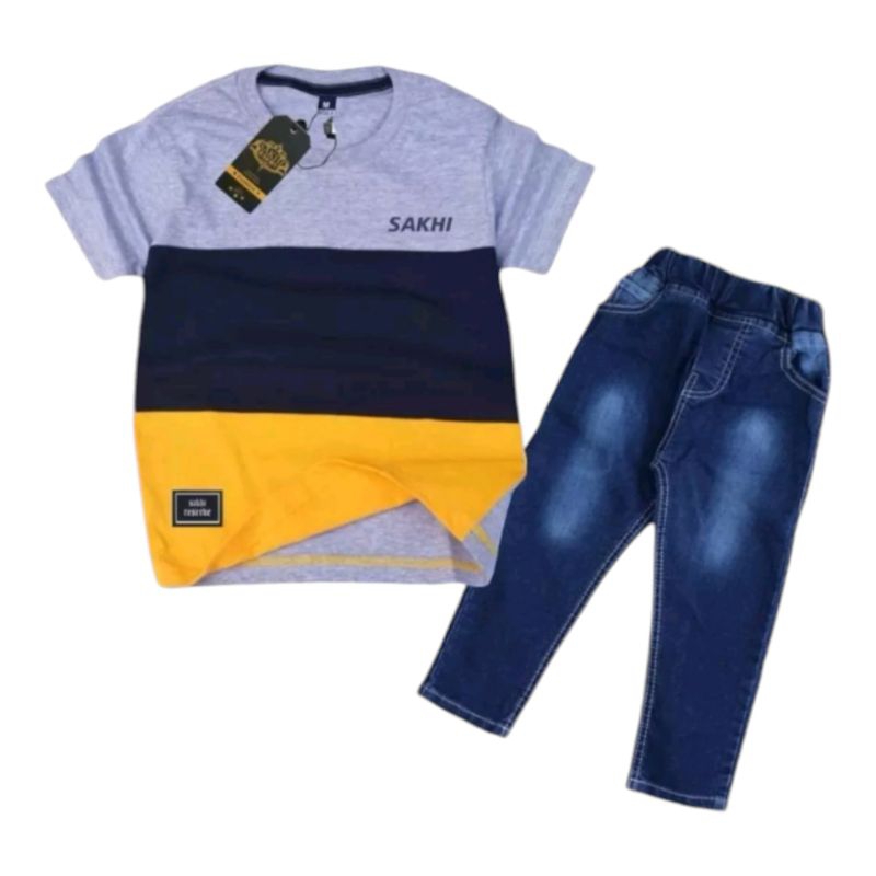 setelan anak laki laki untuk anak usia 1-12 tahun baju kaos dan celana jeans olnevy