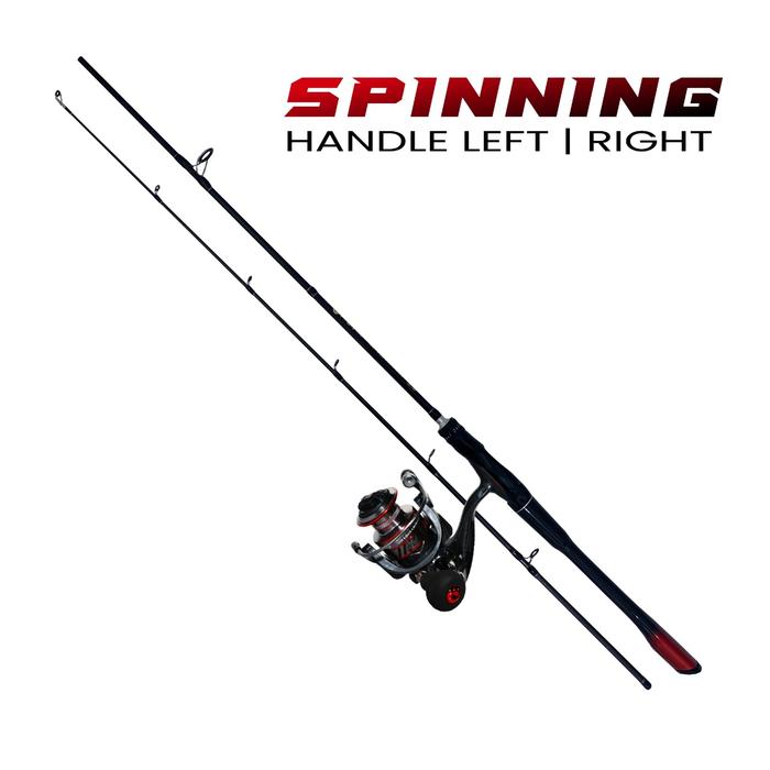 Paket Set Joran Pancing Red Spinning Fishing Rod High Carbon 10-20lbs Dengan Reel Pancing Series DA - 1.80M